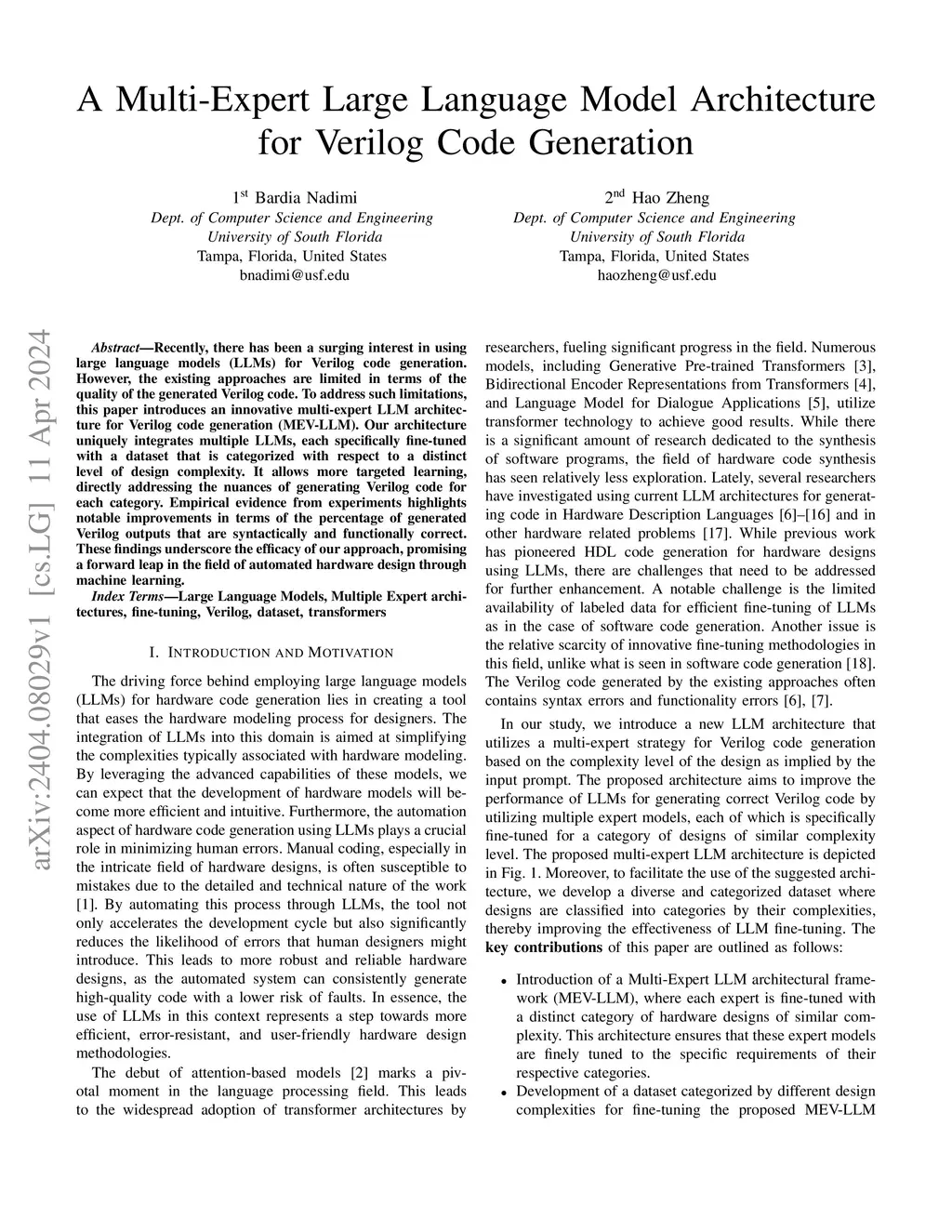 A Multi-Expert Large Language Model Architecture for Verilog Code