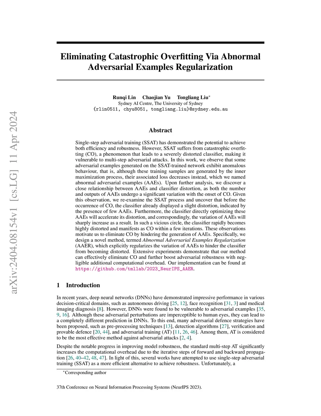 Single-step adversarial training (SSAT) has demonstrated the potential to achieve both efficiency and robustness. However, SSAT suffers from catastrophic overfitting (CO), a phenomenon that leads to a severely distorted classifier, making it vulnerable to multi-step adversarial attacks. In this work, we observe that some adversarial examples generated on the SSAT-trained network exhibit anomalous behaviour, that is, although these training samples are generated by the inner maximization process, their associated loss decreases instead, which we named abnormal adversarial examples (AAEs). Upon further analysis, we discover a close relationship between AAEs and classifier distortion, as both the number and outputs of AAEs undergo a significant variation with the onset of CO. Given this observation, we re-examine the SSAT process and uncover that before the occurrence of CO, the classifier already displayed a slight distortion, indicated by the presence of few AAEs. Furthermore, the classifier directly optimizing these AAEs will accelerate its distortion, and correspondingly, the variation of AAEs will sharply increase as a result. In such a vicious circle, the classifier rapidly becomes highly distorted and manifests as CO within a few iterations. These observations motivate us to eliminate CO by hindering the generation of AAEs. Specifically, we design a novel method, termed Abnormal Adversarial Examples Regularization (AAER), which explicitly regularizes the variation of AAEs to hinder the classifier from becoming distorted. Extensive experiments demonstrate that our method can effectively eliminate CO and further boost adversarial robustness with negligible additional computational overhead.