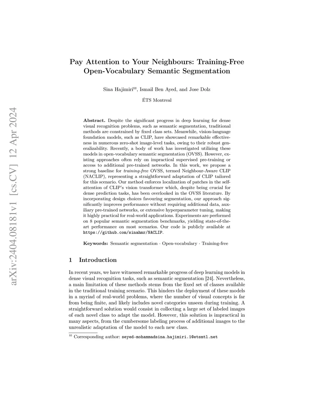 Pay Attention to Your Neighbours: Training-Free Open-Vocabulary Semantic