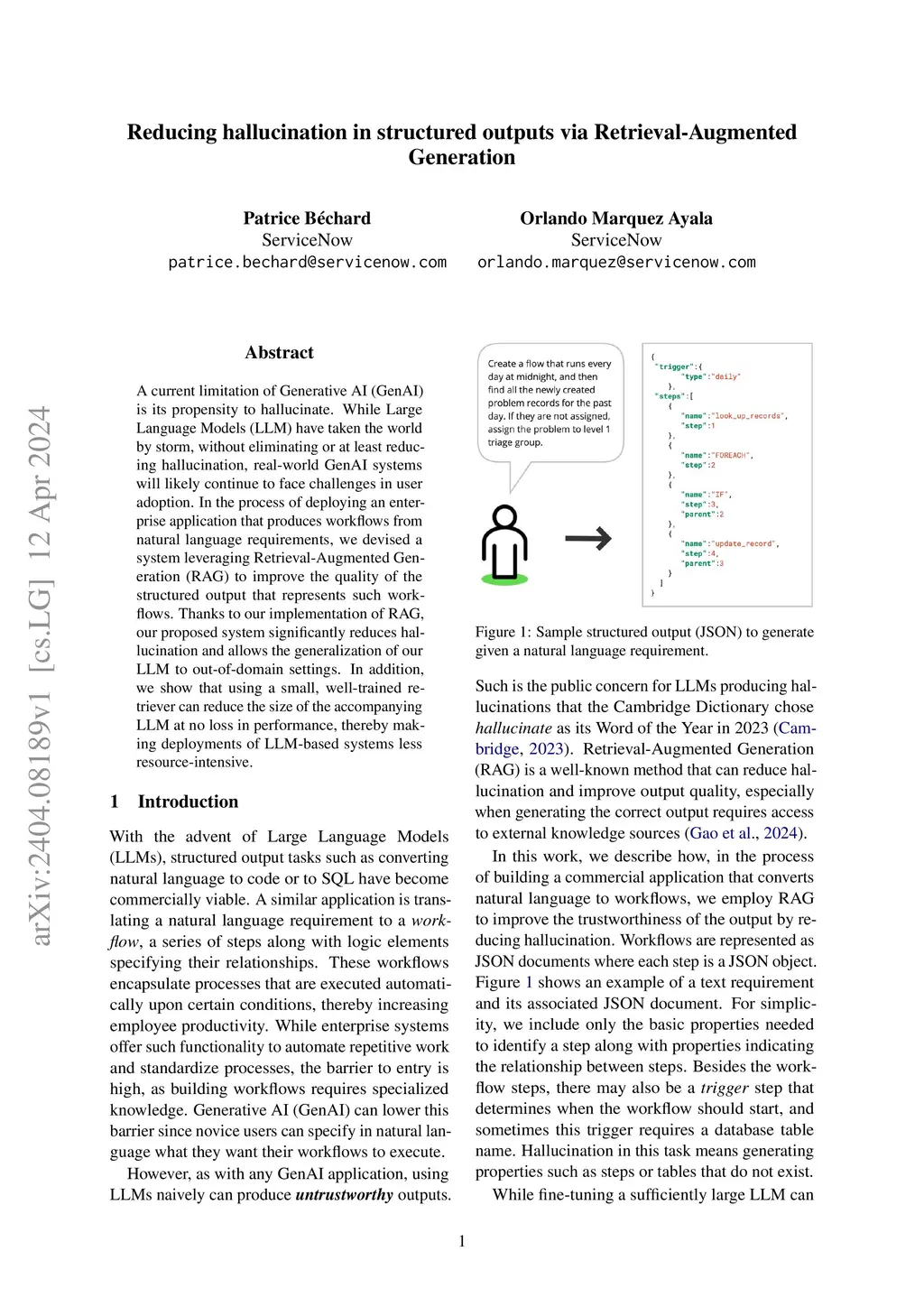 Reducing hallucination in structured outputs via Retrieval-Augmented