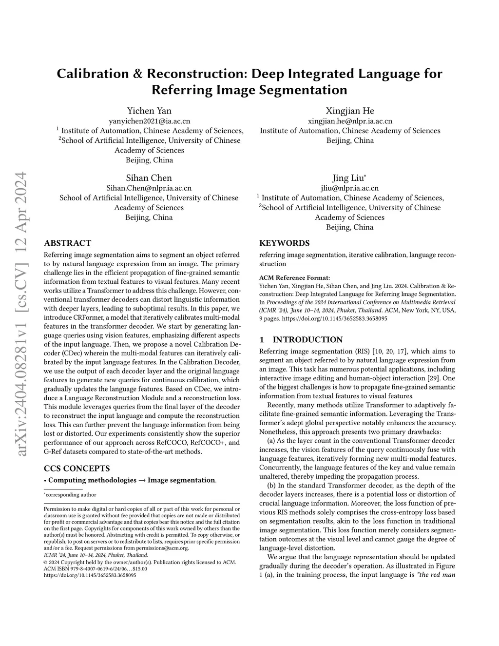 Calibration & Reconstruction: Deep Integrated Language for Referring