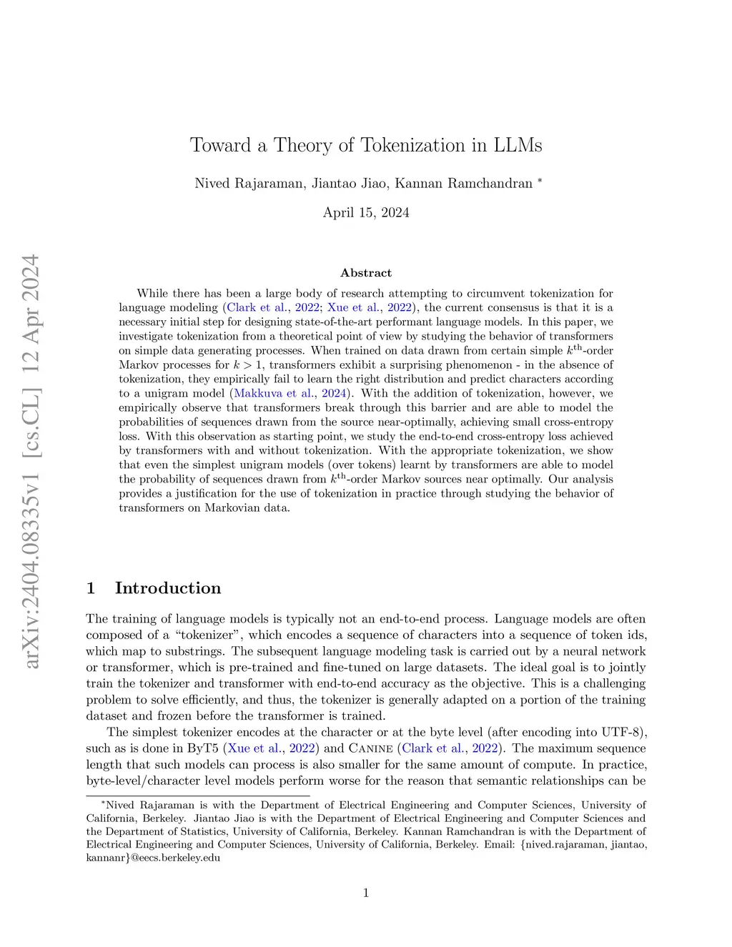 Toward a Theory of Tokenization in LLMs