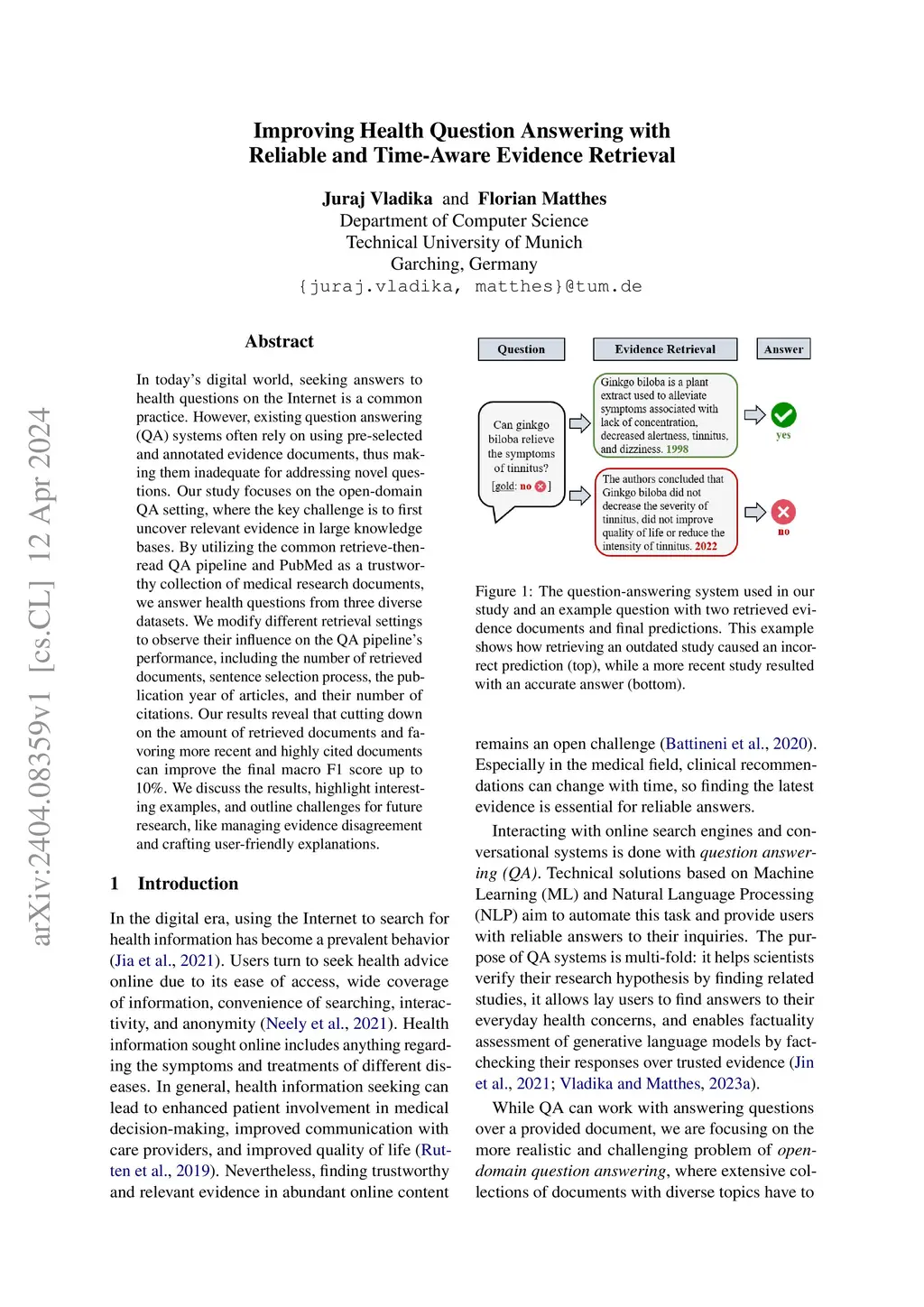 Improving Health Question Answering with Reliable and Time-Aware