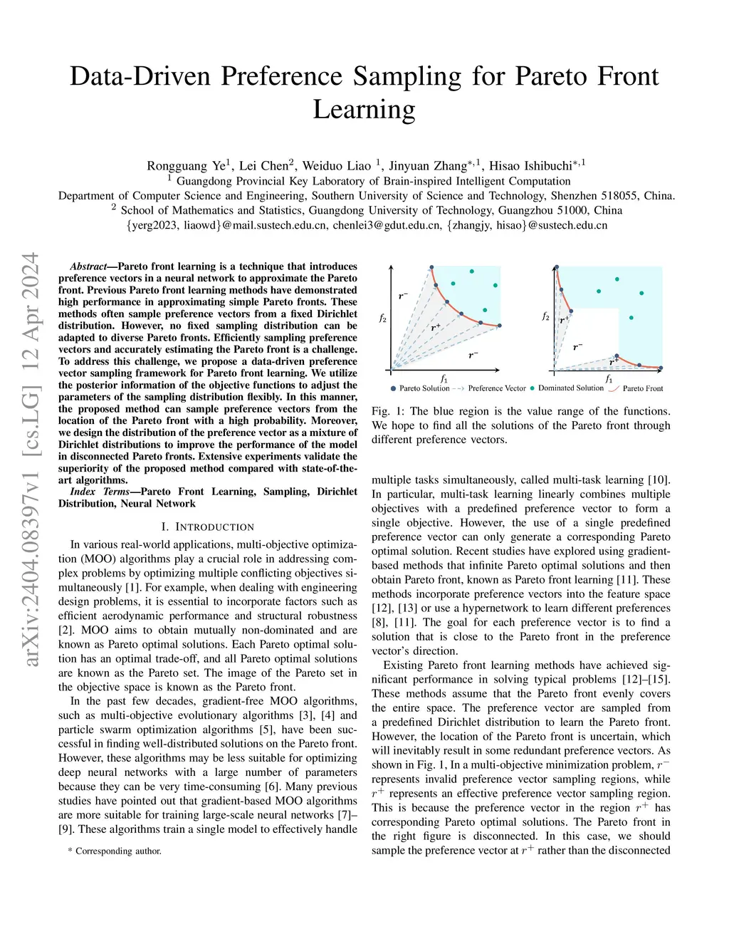 Pareto front learning is a technique that introduces preference vectors in a neural network to approximate the Pareto front. Previous Pareto front learning methods have demonstrated high performance in approximating simple Pareto fronts. These methods often sample preference vectors from a fixed Dirichlet distribution. However, no fixed sampling distribution can be adapted to diverse Pareto fronts. Efficiently sampling preference vectors and accurately estimating the Pareto front is a challenge. To address this challenge, we propose a data-driven preference vector sampling framework for Pareto front learning. We utilize the posterior information of the objective functions to adjust the parameters of the sampling distribution flexibly. In this manner, the proposed method can sample preference vectors from the location of the Pareto front with a high probability. Moreover, we design the distribution of the preference vector as a mixture of Dirichlet distributions to improve the performance of the model in disconnected Pareto fronts. Extensive experiments validate the superiority of the proposed method compared with state-of-the-art algorithms.