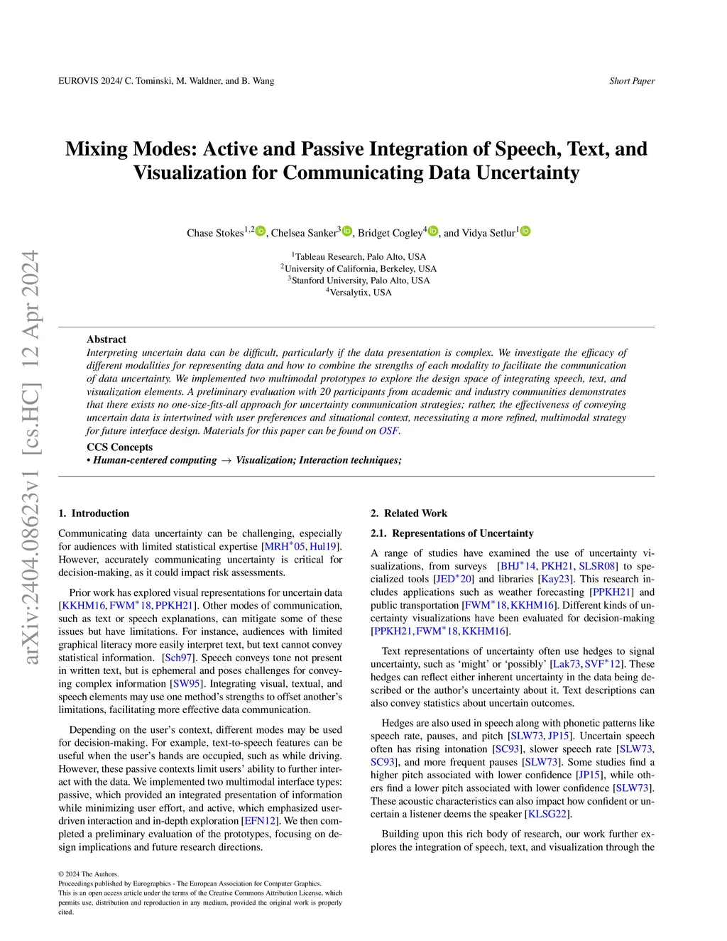 Interpreting uncertain data can be difficult, particularly if the data presentation is complex. We investigate the efficacy of different modalities for representing data and how to combine the strengths of each modality to facilitate the communication of data uncertainty. We implemented two multimodal prototypes to explore the design space of integrating speech, text, and visualization elements. A preliminary evaluation with 20 participants from academic and industry communities demonstrates that there exists no one-size-fits-all approach for uncertainty communication strategies; rather, the effectiveness of conveying uncertain data is intertwined with user preferences and situational context, necessitating a more refined, multimodal strategy for future interface design.