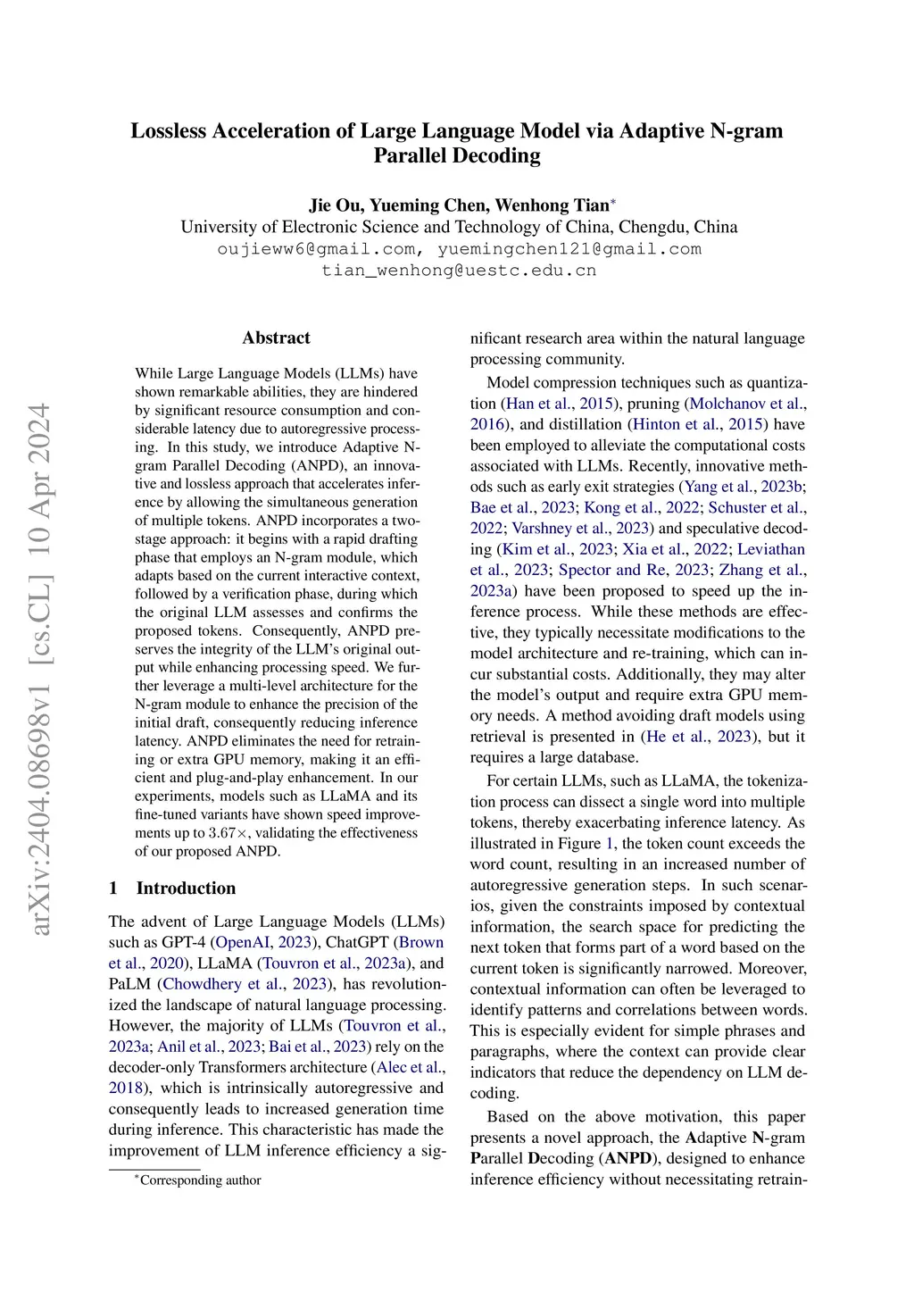 Lossless Acceleration of Large Language Model via Adaptive N-gram
