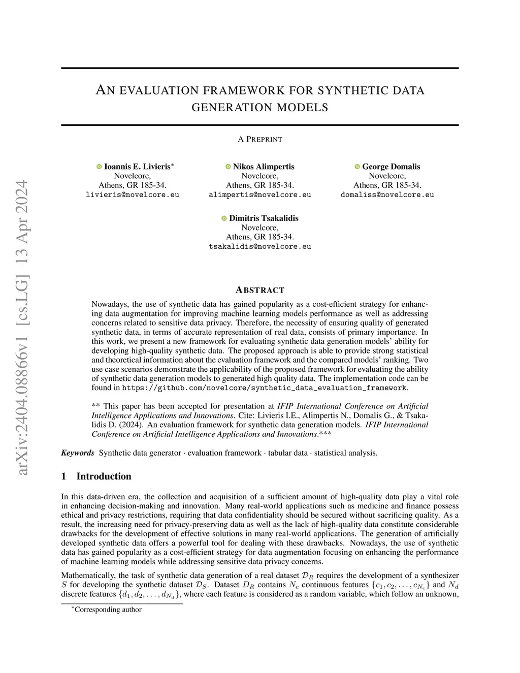 Nowadays, the use of synthetic data has gained popularity as a cost-efficient strategy for enhancing data augmentation for improving machine learning models performance as well as addressing concerns related to sensitive data privacy. Therefore, the necessity of ensuring quality of generated synthetic data, in terms of accurate representation of real data, consists of primary importance. In this work, we present a new framework for evaluating synthetic data generation models' ability for developing high-quality synthetic data. The proposed approach is able to provide strong statistical and theoretical information about the evaluation framework and the compared models' ranking. Two use case scenarios demonstrate the applicability of the proposed framework for evaluating the ability of synthetic data generation models to generated high quality data. The implementation code can be found in https://github.com/novelcore/synthetic_data_evaluation_framework.
