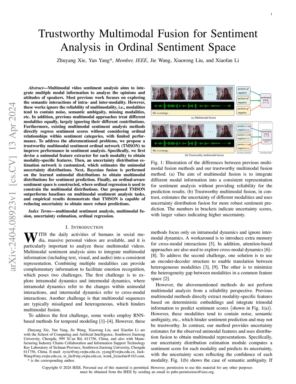 Trustworthy Multimodal Fusion for Sentiment Analysis in Ordinal