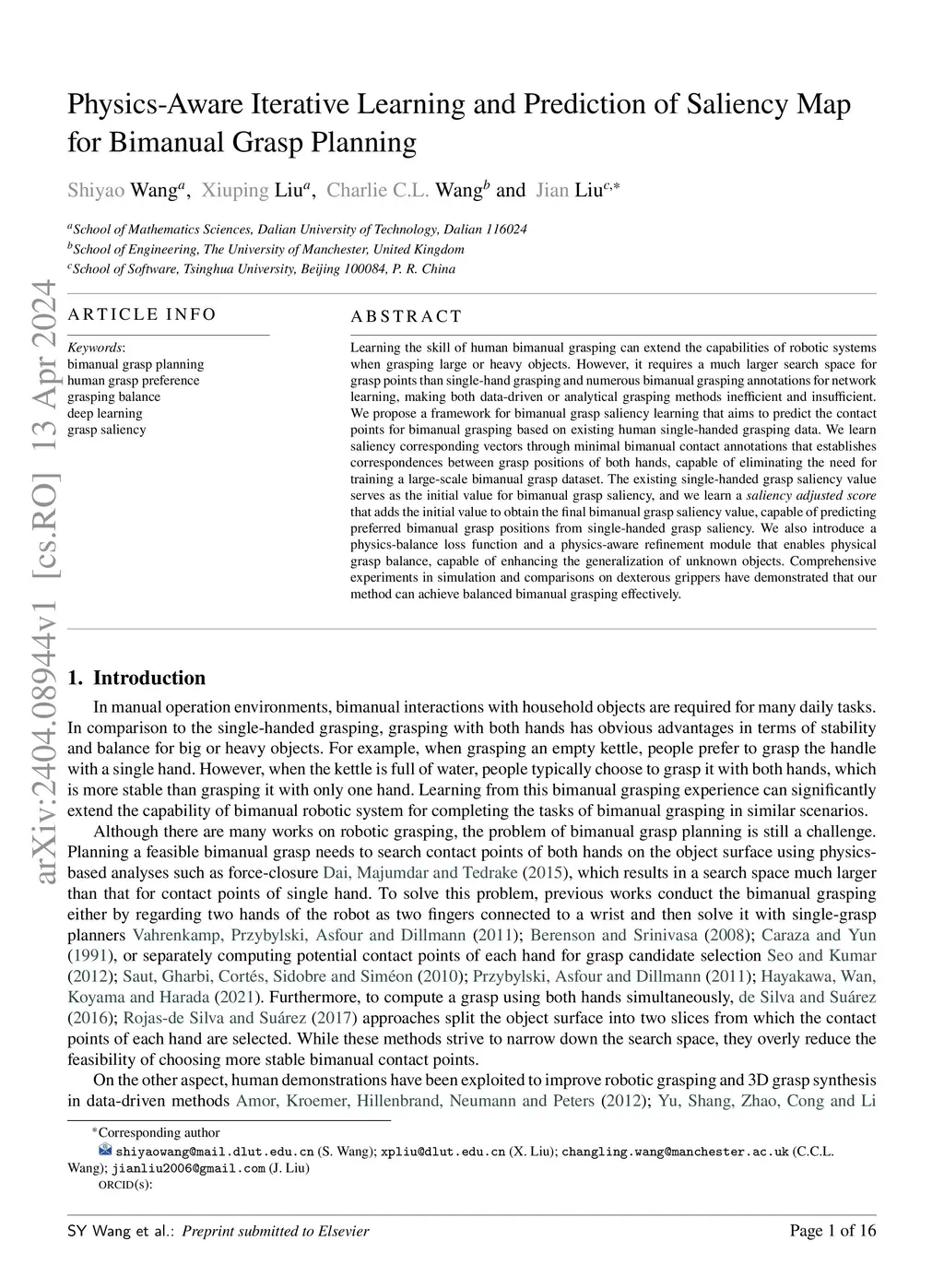 Learning the skill of human bimanual grasping can extend the capabilities of robotic systems when grasping large or heavy objects. However, it requires a much larger search space for grasp points than single-hand grasping and numerous bimanual grasping annotations for network learning, making both data-driven or analytical grasping methods inefficient and insufficient. We propose a framework for bimanual grasp saliency learning that aims to predict the contact points for bimanual grasping based on existing human single-handed grasping data. We learn saliency corresponding vectors through minimal bimanual contact annotations that establishes correspondences between grasp positions of both hands, capable of eliminating the need for training a large-scale bimanual grasp dataset. The existing single-handed grasp saliency value serves as the initial value for bimanual grasp saliency, and we learn a saliency adjusted score that adds the initial value to obtain the final bimanual grasp saliency value, capable of predicting preferred bimanual grasp positions from single-handed grasp saliency. We also introduce a physics-balance loss function and a physics-aware refinement module that enables physical grasp balance, capable of enhancing the generalization of unknown objects. Comprehensive experiments in simulation and comparisons on dexterous grippers have demonstrated that our method can achieve balanced bimanual grasping effectively.