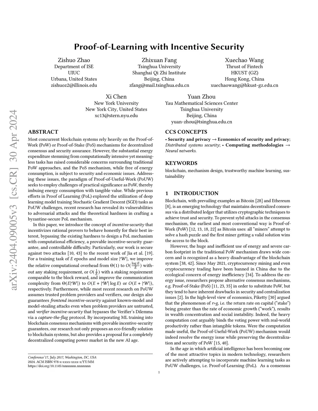 Most concurrent blockchain systems rely heavily on the Proof-of-Work (PoW) or Proof-of-Stake (PoS) mechanisms for decentralized consensus and security assurance. However, the substantial energy expenditure stemming from computationally intensive yet meaningless tasks has raised considerable concerns surrounding traditional PoW approaches, The PoS mechanism, while free of energy consumption, is subject to security and economic issues. Addressing these issues, the paradigm of Proof-of-Useful-Work (PoUW) seeks to employ challenges of practical significance as PoW, thereby imbuing energy consumption with tangible value. While previous efforts in Proof of Learning (PoL) explored the utilization of deep learning model training SGD tasks as PoUW challenges, recent research has revealed its vulnerabilities to adversarial attacks and the theoretical hardness in crafting a byzantine-secure PoL mechanism. In this paper, we introduce the concept of incentive-security that incentivizes rational provers to behave honestly for their best interest, bypassing the existing hardness to design a PoL mechanism with computational efficiency, a provable incentive-security guarantee and controllable difficulty. Particularly, our work is secure against two attacks to the recent work of Jia et al. [2021], and also improves the computational overhead from to . Furthermore, while most recent research assumes trusted problem providers and verifiers, our design also guarantees frontend incentive-security even when problem providers are untrusted, and verifier incentive-security that bypasses the Verifier's Dilemma. By incorporating ML training into blockchain consensus mechanisms with provable guarantees, our research not only proposes an eco-friendly solution to blockchain systems, but also provides a proposal for a completely decentralized computing power market in the new AI age.