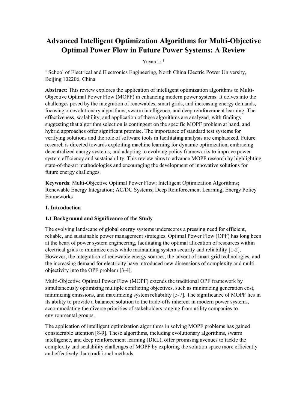 Advanced Intelligent Optimization Algorithms for Multi-Objective Optimal