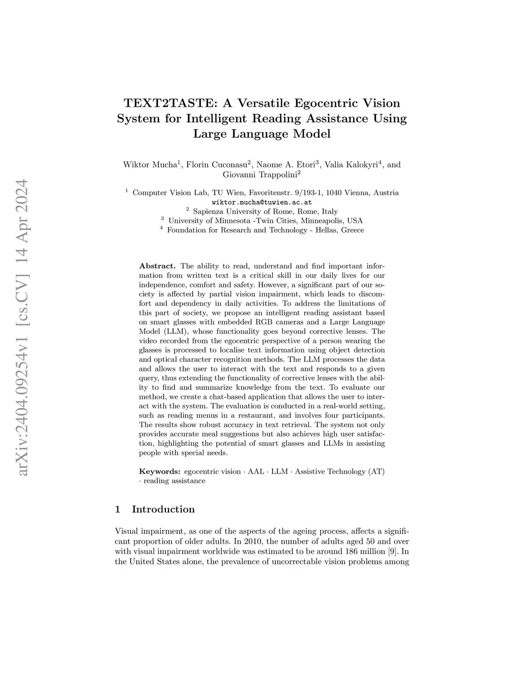 TEXT2TASTE: A Versatile Egocentric Vision System for Intelligent Reading