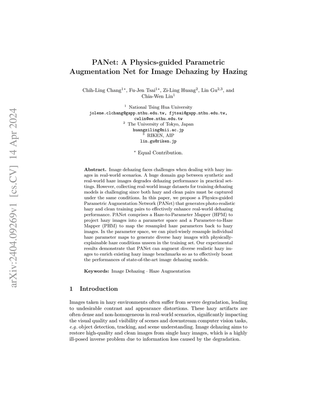 PANet: A Physics-guided Parametric Augmentation Net for Image Dehazing