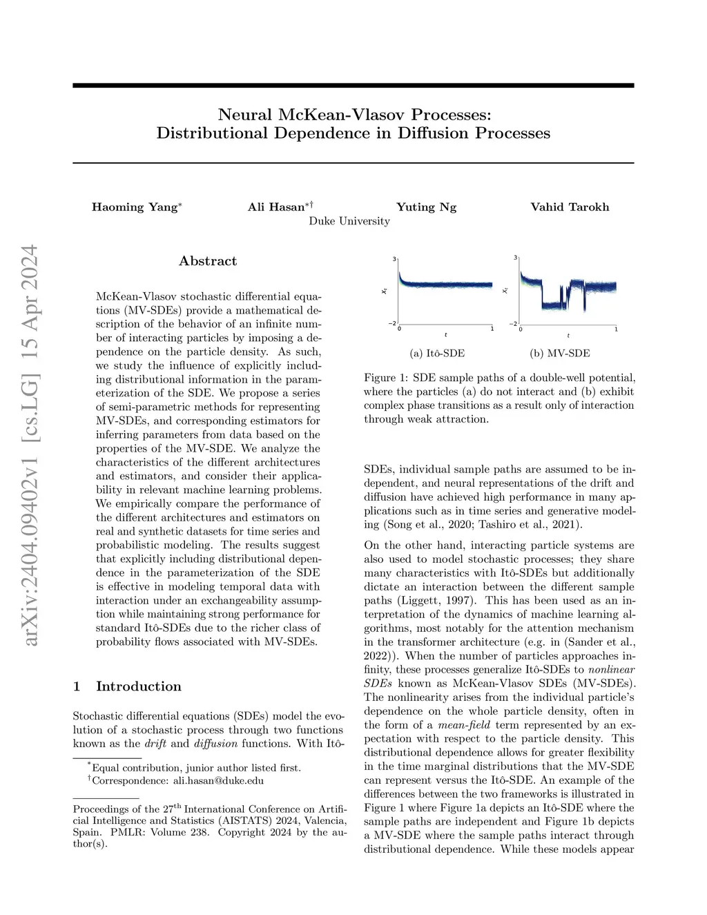 McKean-Vlasov stochastic differential equations (MV-SDEs) provide a mathematical description of the behavior of an infinite number of interacting particles by imposing a dependence on the particle density. As such, we study the influence of explicitly including distributional information in the parameterization of the SDE. We propose a series of semi-parametric methods for representing MV-SDEs, and corresponding estimators for inferring parameters from data based on the properties of the MV-SDE. We analyze the characteristics of the different architectures and estimators, and consider their applicability in relevant machine learning problems. We empirically compare the performance of the different architectures and estimators on real and synthetic datasets for time series and probabilistic modeling. The results suggest that explicitly including distributional dependence in the parameterization of the SDE is effective in modeling temporal data with interaction under an exchangeability assumption while maintaining strong performance for standard It\^o-SDEs due to the richer class of probability flows associated with MV-SDEs.