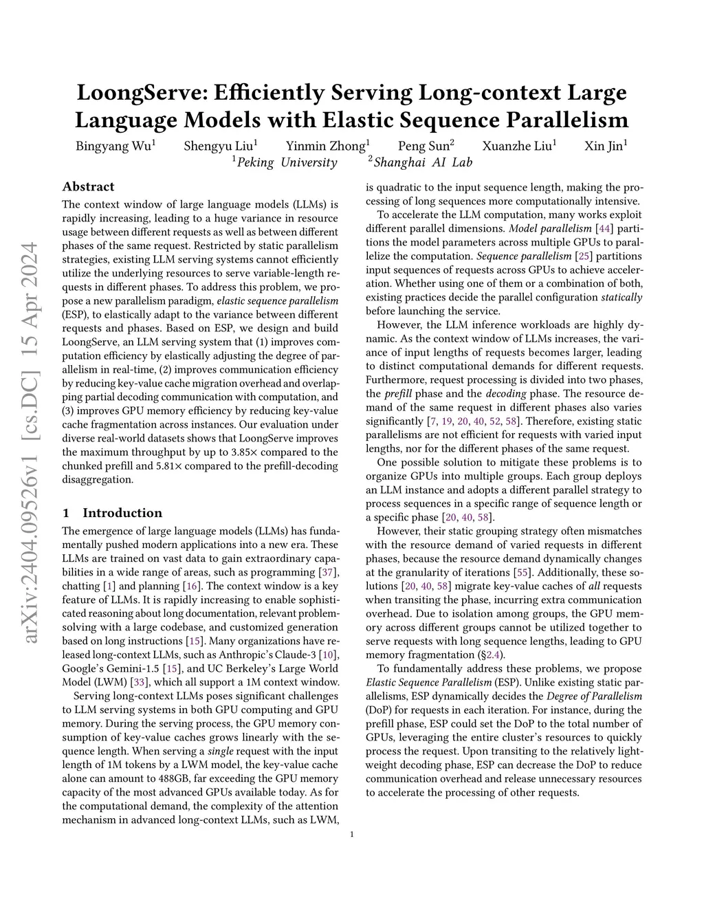 LoongServe: Efficiently Serving Long-context Large Language Models with