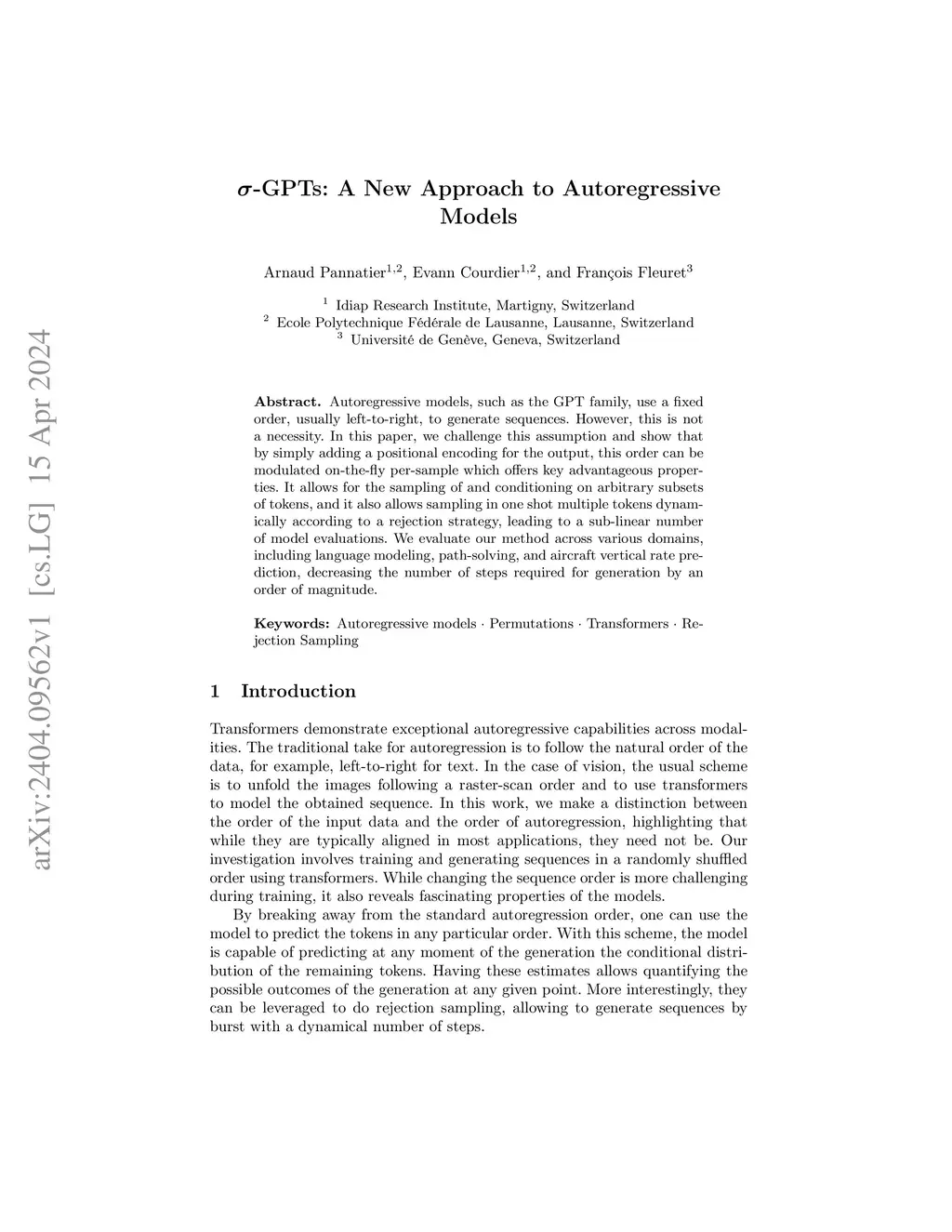Autoregressive models, such as the GPT family, use a fixed order, usually left-to-right, to generate sequences. However, this is not a necessity. In this paper, we challenge this assumption and show that by simply adding a positional encoding for the output, this order can be modulated on-the-fly per-sample which offers key advantageous properties. It allows for the sampling of and conditioning on arbitrary subsets of tokens, and it also allows sampling in one shot multiple tokens dynamically according to a rejection strategy, leading to a sub-linear number of model evaluations. We evaluate our method across various domains, including language modeling, path-solving, and aircraft vertical rate prediction, decreasing the number of steps required for generation by an order of magnitude.