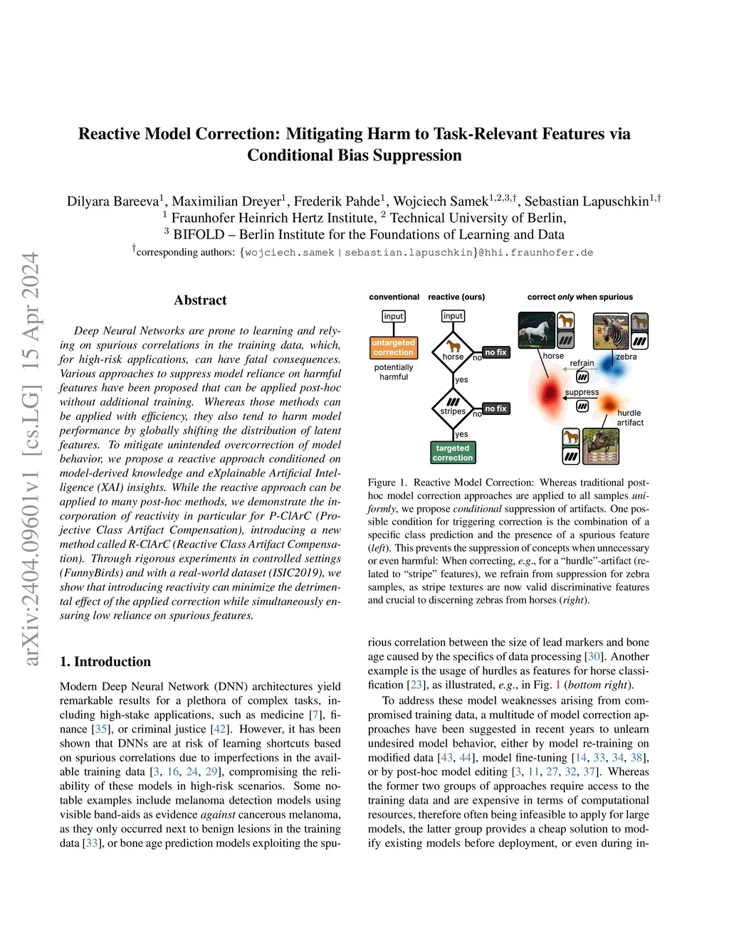Deep Neural Networks are prone to learning and relying on spurious correlations in the training data, which, for high-risk applications, can have fatal consequences. Various approaches to suppress model reliance on harmful features have been proposed that can be applied post-hoc without additional training. Whereas those methods can be applied with efficiency, they also tend to harm model performance by globally shifting the distribution of latent features. To mitigate unintended overcorrection of model behavior, we propose a reactive approach conditioned on model-derived knowledge and eXplainable Artificial Intelligence (XAI) insights. While the reactive approach can be applied to many post-hoc methods, we demonstrate the incorporation of reactivity in particular for P-ClArC (Projective Class Artifact Compensation), introducing a new method called R-ClArC (Reactive Class Artifact Compensation). Through rigorous experiments in controlled settings (FunnyBirds) and with a real-world dataset (ISIC2019), we show that introducing reactivity can minimize the detrimental effect of the applied correction while simultaneously ensuring low reliance on spurious features.