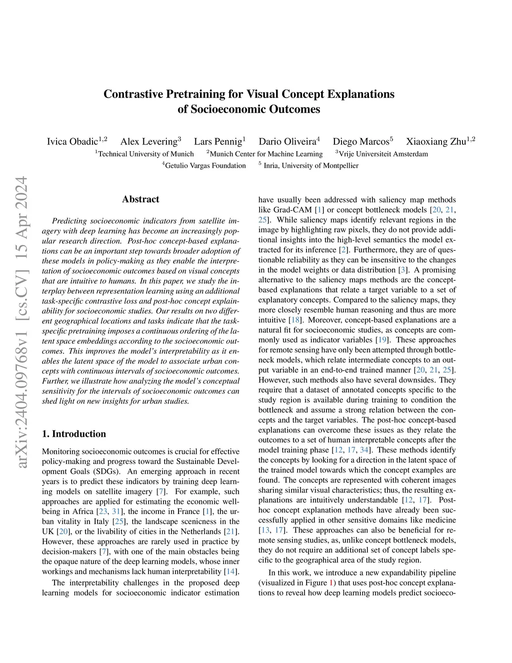 Contrastive Pretraining for Visual Concept Explanations of Socioeconomic