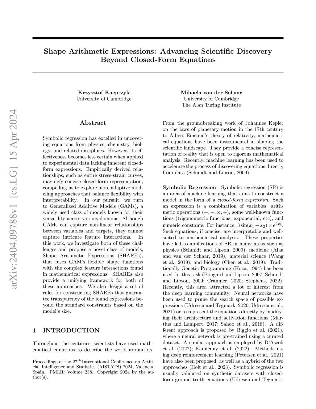 Symbolic regression has excelled in uncovering equations from physics, chemistry, biology, and related disciplines. However, its effectiveness becomes less certain when applied to experimental data lacking inherent closed-form expressions. Empirically derived relationships, such as entire stress-strain curves, may defy concise closed-form representation, compelling us to explore more adaptive modeling approaches that balance flexibility with interpretability. In our pursuit, we turn to Generalized Additive Models (GAMs), a widely used class of models known for their versatility across various domains. Although GAMs can capture non-linear relationships between variables and targets, they cannot capture intricate feature interactions. In this work, we investigate both of these challenges and propose a novel class of models, Shape Arithmetic Expressions (SHAREs), that fuses GAM's flexible shape functions with the complex feature interactions found in mathematical expressions. SHAREs also provide a unifying framework for both of these approaches. We also design a set of rules for constructing SHAREs that guarantee transparency of the found expressions beyond the standard constraints based on the model's size.