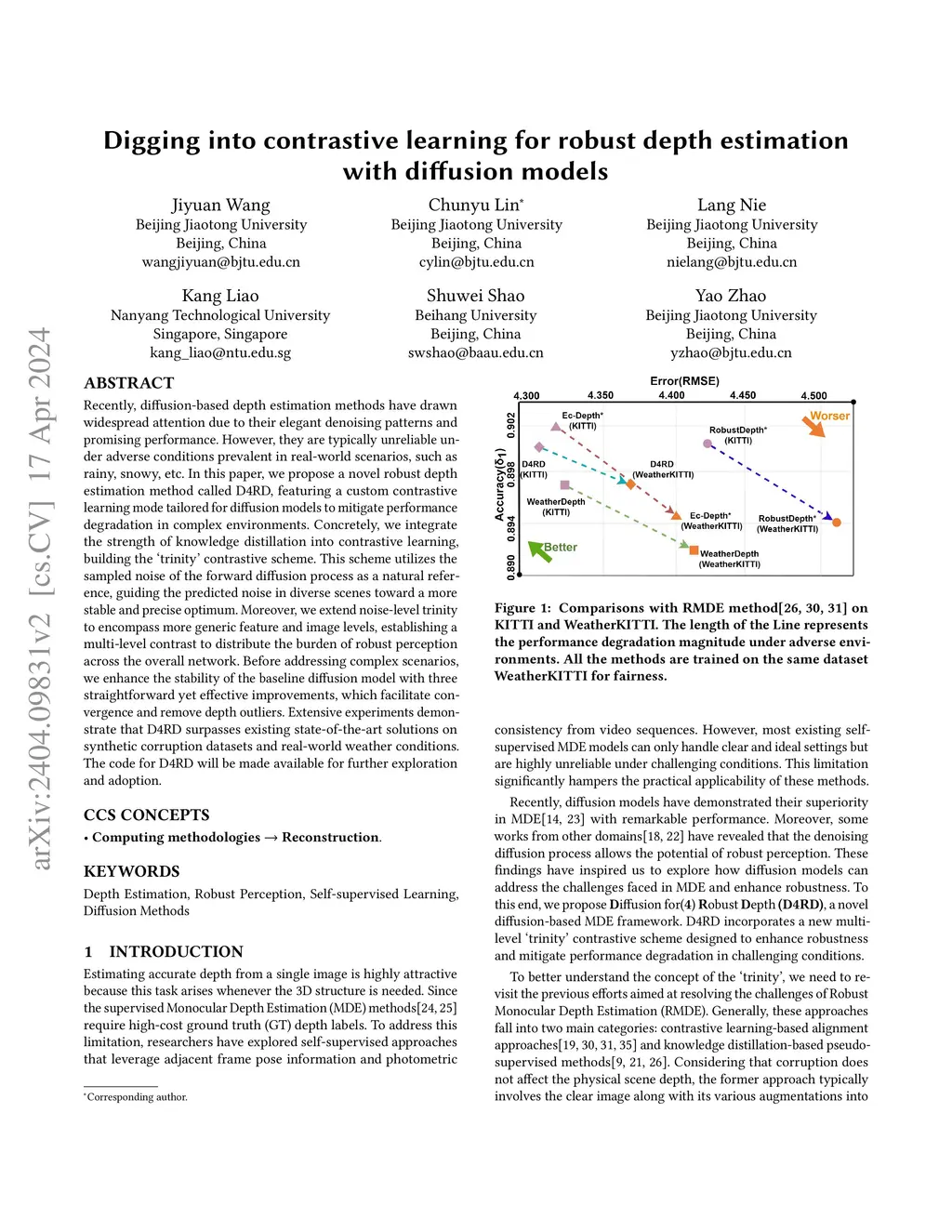 Digging into contrastive learning for robust depth estimation with diffusion models