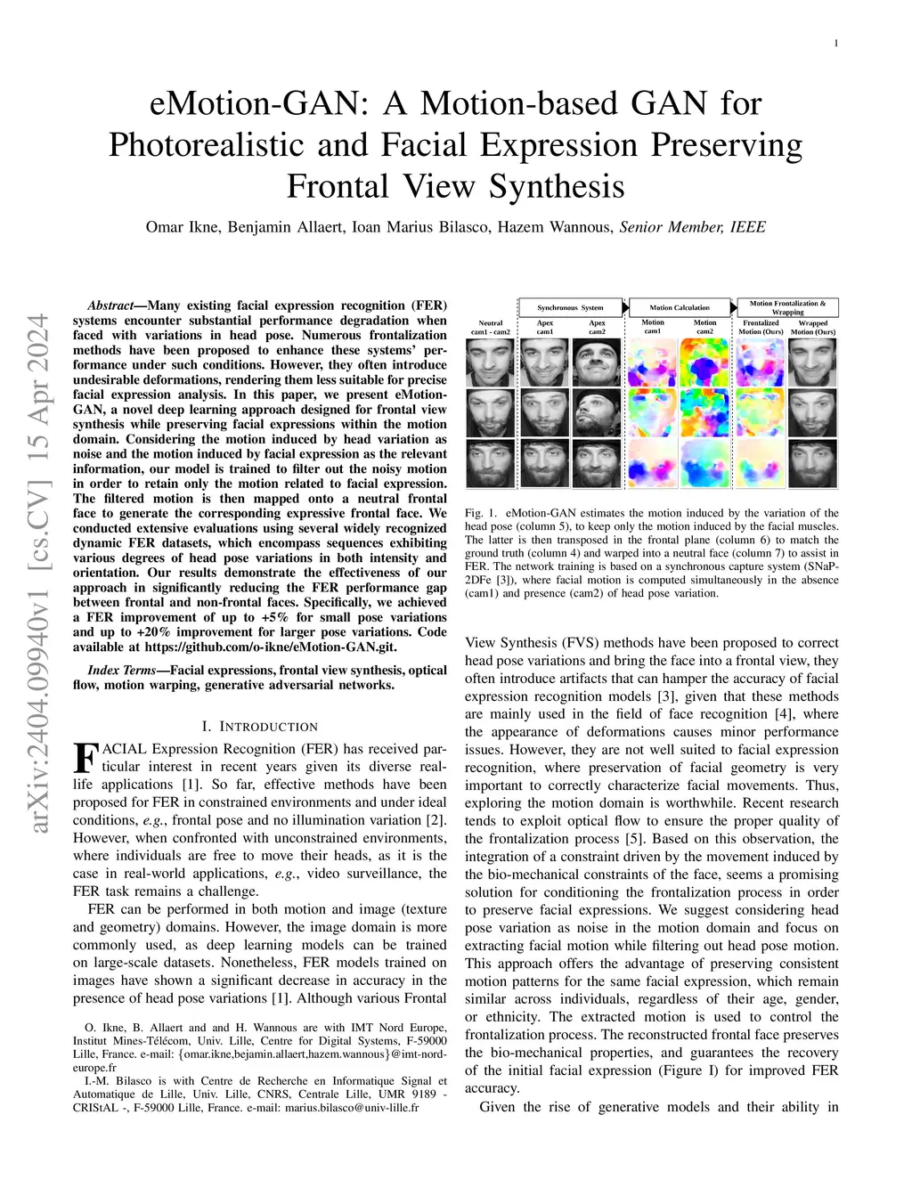 eMotion-GAN: A Motion-based GAN for Photorealistic and Facial Expression