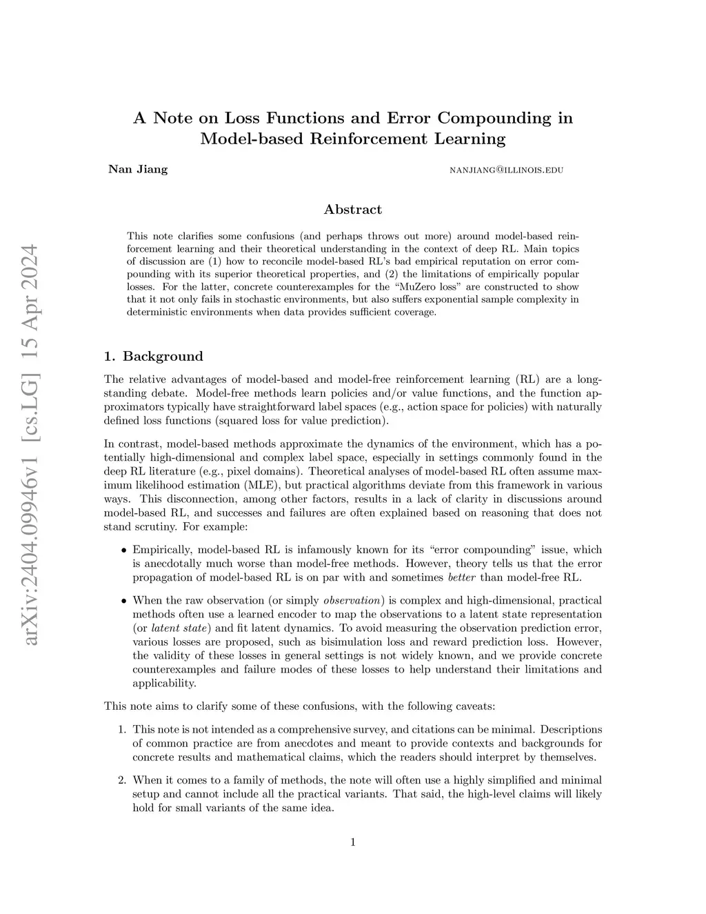This note clarifies some confusions (and perhaps throws out more) around model-based reinforcement learning and their theoretical understanding in the context of deep RL. Main topics of discussion are (1) how to reconcile model-based RL's bad empirical reputation on error compounding with its superior theoretical properties, and (2) the limitations of empirically popular losses. For the latter, concrete counterexamples for the "MuZero loss" are constructed to show that it not only fails in stochastic environments, but also suffers exponential sample complexity in deterministic environments when data provides sufficient coverage.