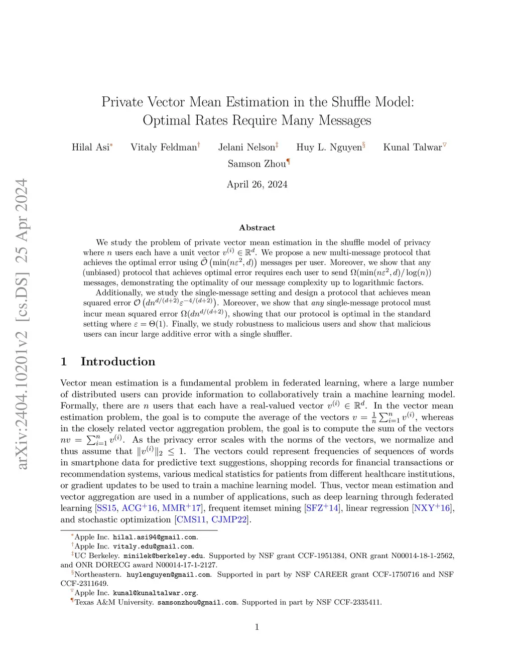 We study the problem of private vector mean estimation in the shuffle model of privacy where users each have a unit vector . We propose a new multi-message protocol that achieves the optimal error using messages per user. Moreover, we show that any (unbiased) protocol that achieves optimal error requires each user to send messages, demonstrating the optimality of our message complexity up to logarithmic factors. Additionally, we study the single-message setting and design a protocol that achieves mean squared error . Moreover, we show that any single-message protocol must incur mean squared error , showing that our protocol is optimal in the standard setting where . Finally, we study robustness to malicious users and show that malicious users can incur large additive error with a single shuffler.