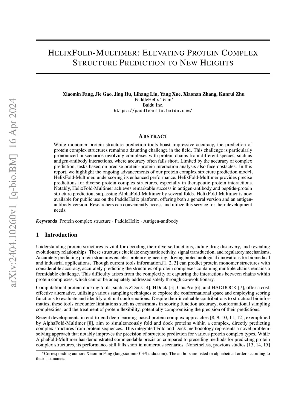 While monomer protein structure prediction tools boast impressive accuracy, the prediction of protein complex structures remains a daunting challenge in the field. This challenge is particularly pronounced in scenarios involving complexes with protein chains from different species, such as antigen-antibody interactions, where accuracy often falls short. Limited by the accuracy of complex prediction, tasks based on precise protein-protein interaction analysis also face obstacles. In this report, we highlight the ongoing advancements of our protein complex structure prediction model, HelixFold-Multimer, underscoring its enhanced performance. HelixFold-Multimer provides precise predictions for diverse protein complex structures, especially in therapeutic protein interactions. Notably, HelixFold-Multimer achieves remarkable success in antigen-antibody and peptide-protein structure prediction, greatly surpassing AlphaFold 3. HelixFold-Multimer is now available for public use on the PaddleHelix platform, offering both a general version and an antigen-antibody version. Researchers can conveniently access and utilize this service for their development needs.
