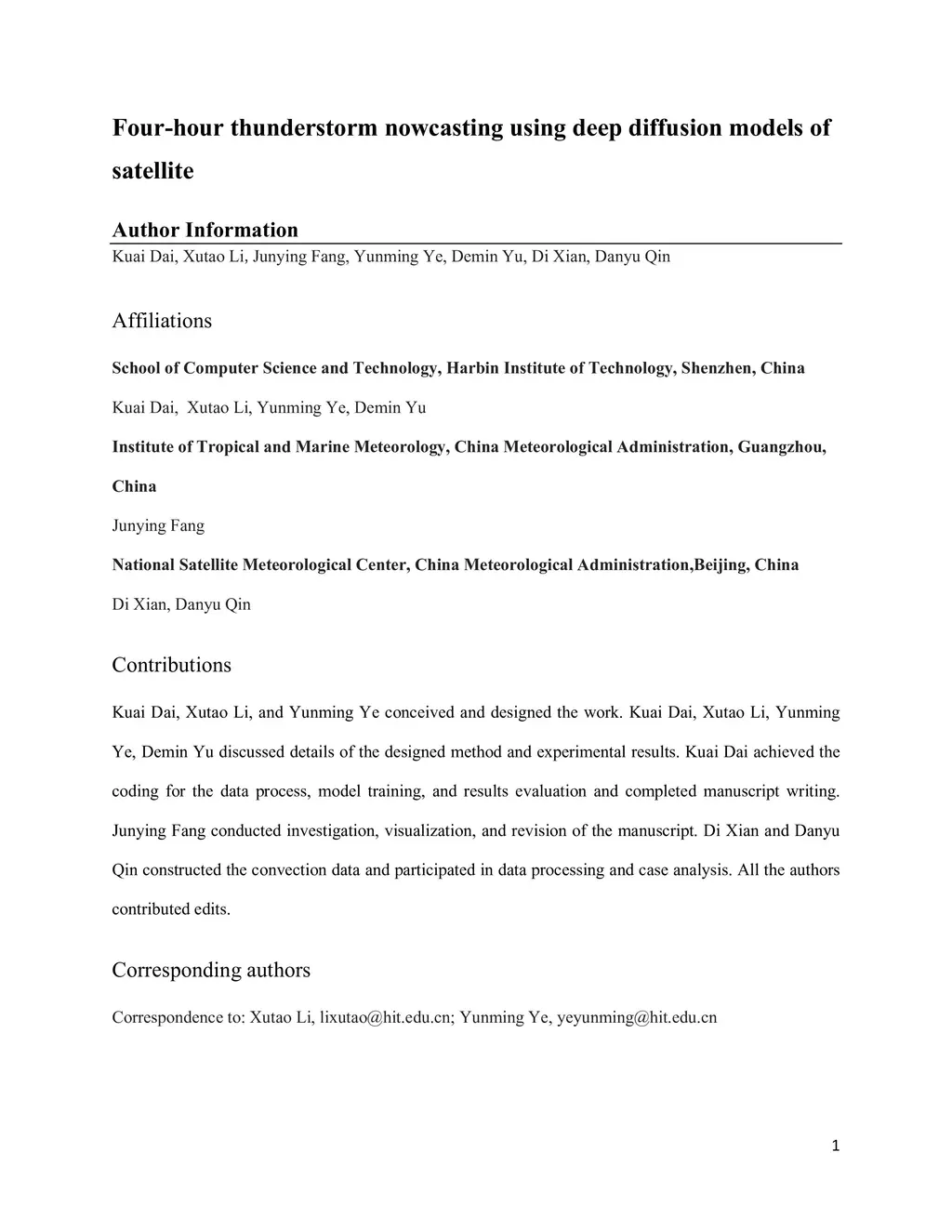 Four-hour thunderstorm nowcasting using deep diffusion models of
