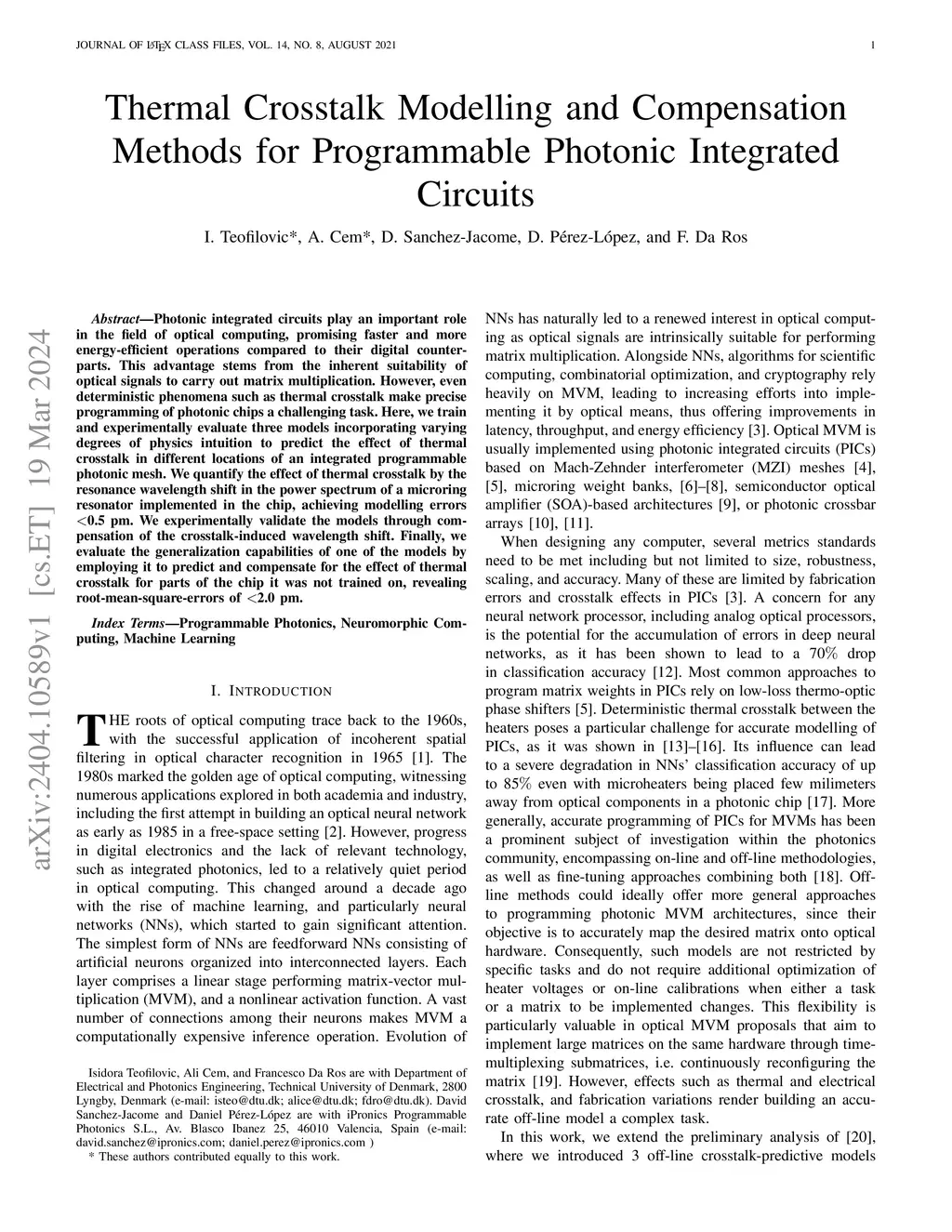 Thermal Crosstalk Modelling and Compensation Methods for Programmable