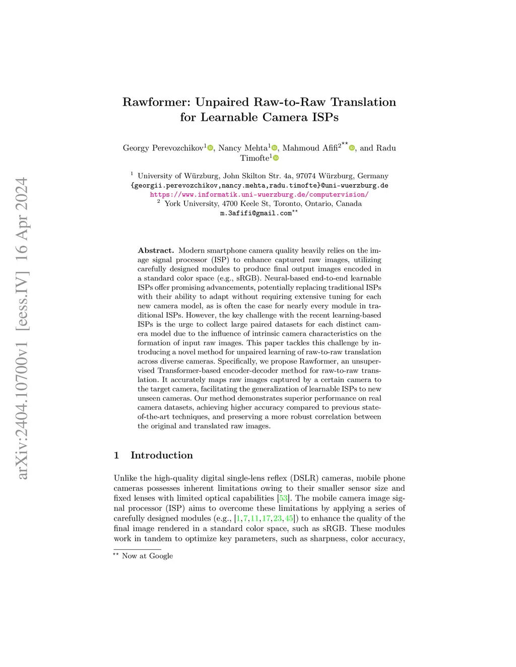 Rawformer: Unpaired Raw-to-Raw Translation for Learnable Camera ISPs