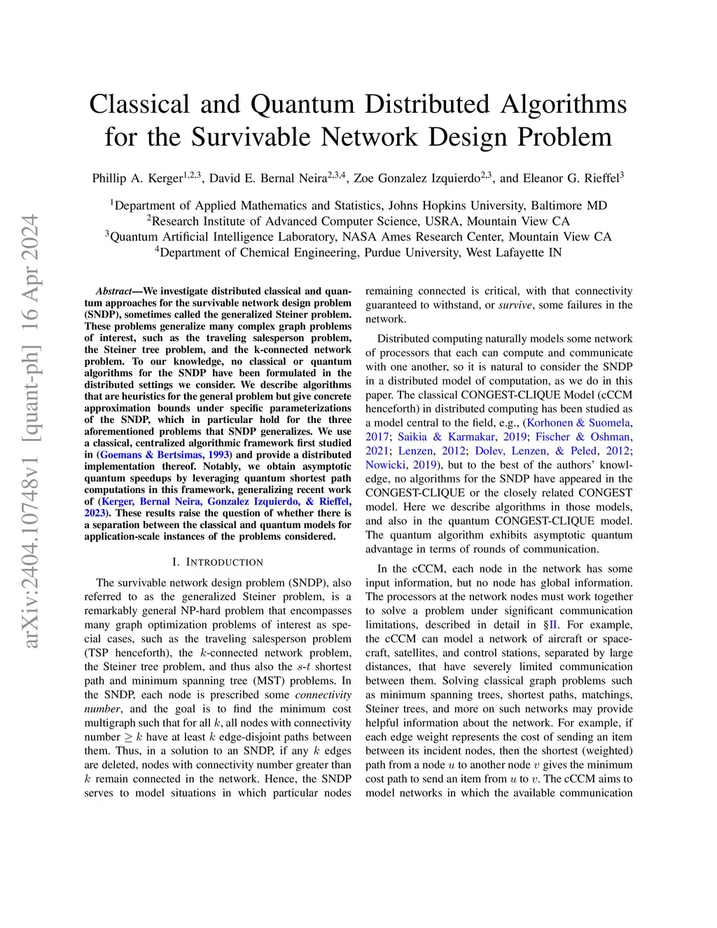 Classical and Quantum Distributed Algorithms for the Survivable Network