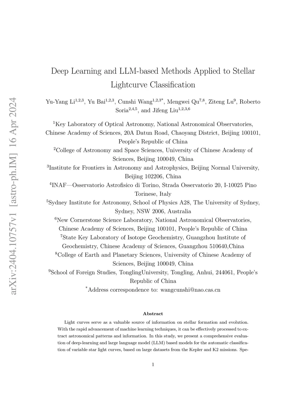Deep Learning and LLM-based Methods Applied to Stellar Lightcurve Classification