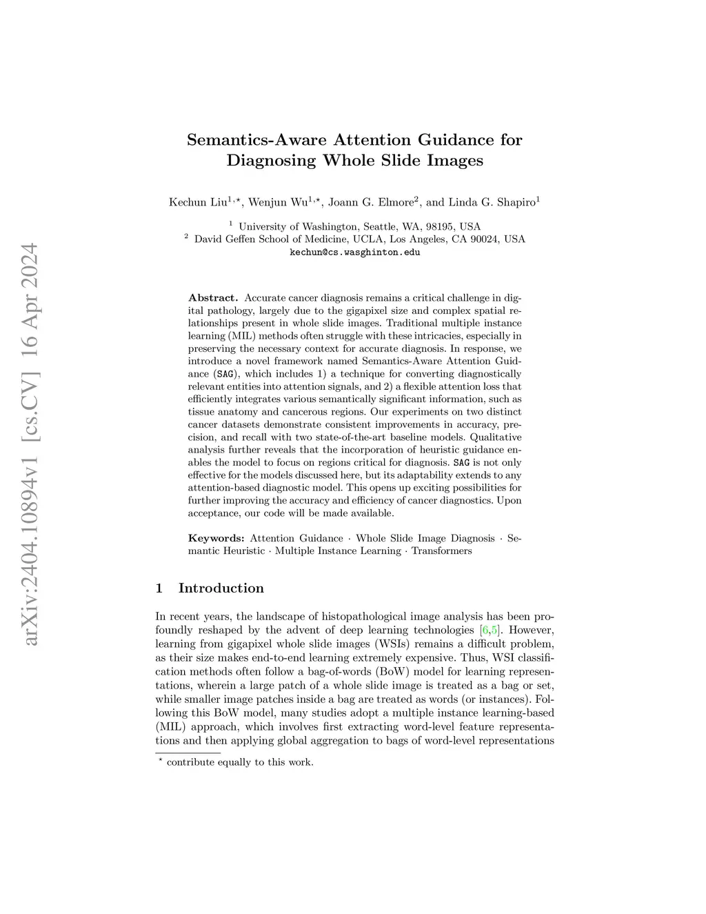Semantics-Aware Attention Guidance for Diagnosing Whole Slide Images
