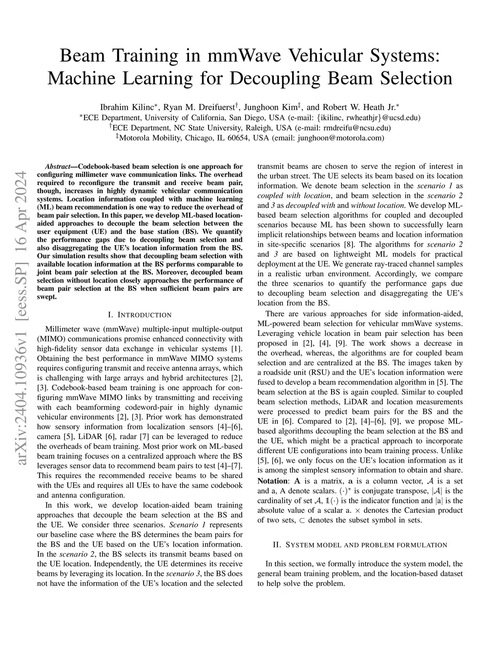Codebook-based beam selection is one approach for configuring millimeter wave communication links. The overhead required to reconfigure the transmit and receive beam pair, though, increases in highly dynamic vehicular communication systems. Location information coupled with machine learning (ML) beam recommendation is one way to reduce the overhead of beam pair selection. In this paper, we develop ML-based location-aided approaches to decouple the beam selection between the user equipment (UE) and the base station (BS). We quantify the performance gaps due to decoupling beam selection and also disaggregating the UE's location information from the BS. Our simulation results show that decoupling beam selection with available location information at the BS performs comparable to joint beam pair selection at the BS. Moreover, decoupled beam selection without location closely approaches the performance of beam pair selection at the BS when sufficient beam pairs are swept.