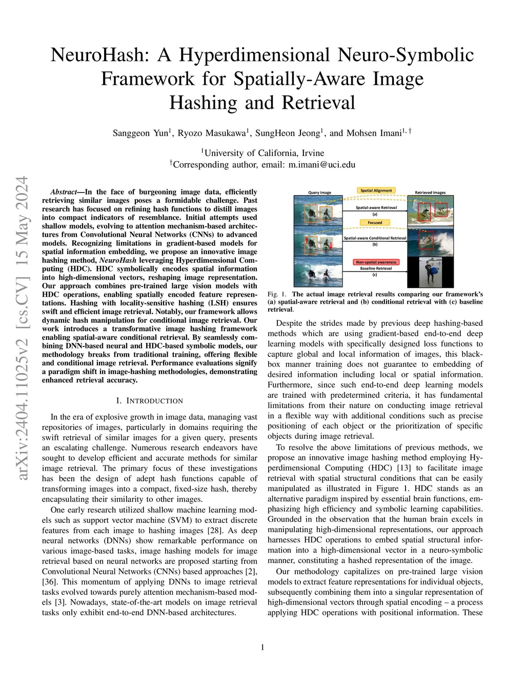 Customizable image retrieval from large datasets remains a critical challenge, particularly when preserving spatial relationships within images. Traditional hashing methods, primarily based on deep learning, often fail to capture spatial information adequately and lack transparency. In this paper, we introduce NeuroHash, a novel neuro-symbolic framework leveraging Hyperdimensional Computing (HDC) to enable highly customizable, spatially-aware image retrieval. NeuroHash combines pre-trained deep neural network models with HDC-based symbolic models, allowing for flexible manipulation of hash values to support conditional image retrieval. Our method includes a self-supervised context-aware HDC encoder and novel loss terms for optimizing lower-dimensional bipolar hashing using multilinear hyperplanes. We evaluate NeuroHash on two benchmark datasets, demonstrating superior performance compared to state-of-the-art hashing methods, as measured by mAP@5K scores and our newly introduced metric, mAP@5Kr, which assesses spatial alignment. The results highlight NeuroHash's ability to achieve competitive performance while offering significant advantages in flexibility and customization, paving the way for more advanced and versatile image retrieval systems.