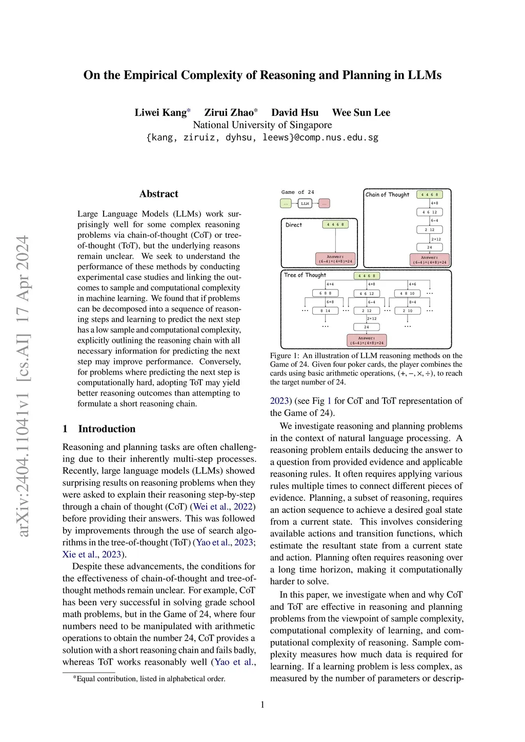 On the Empirical Complexity of Reasoning and Planning in LLMs
