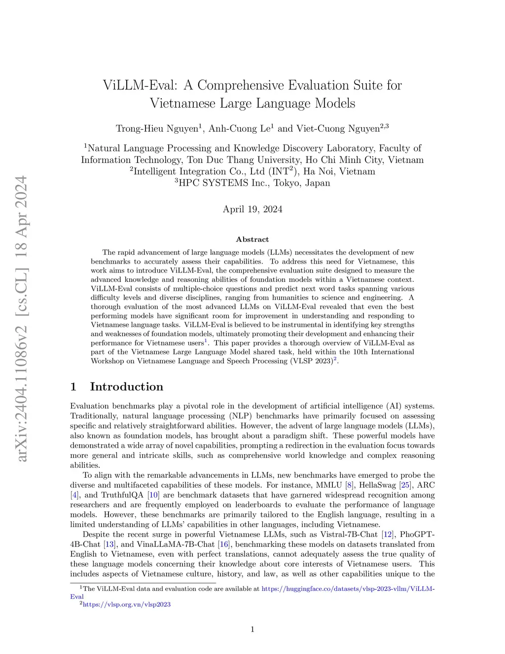 ViLLM-Eval: A Comprehensive Evaluation Suite for Vietnamese Large