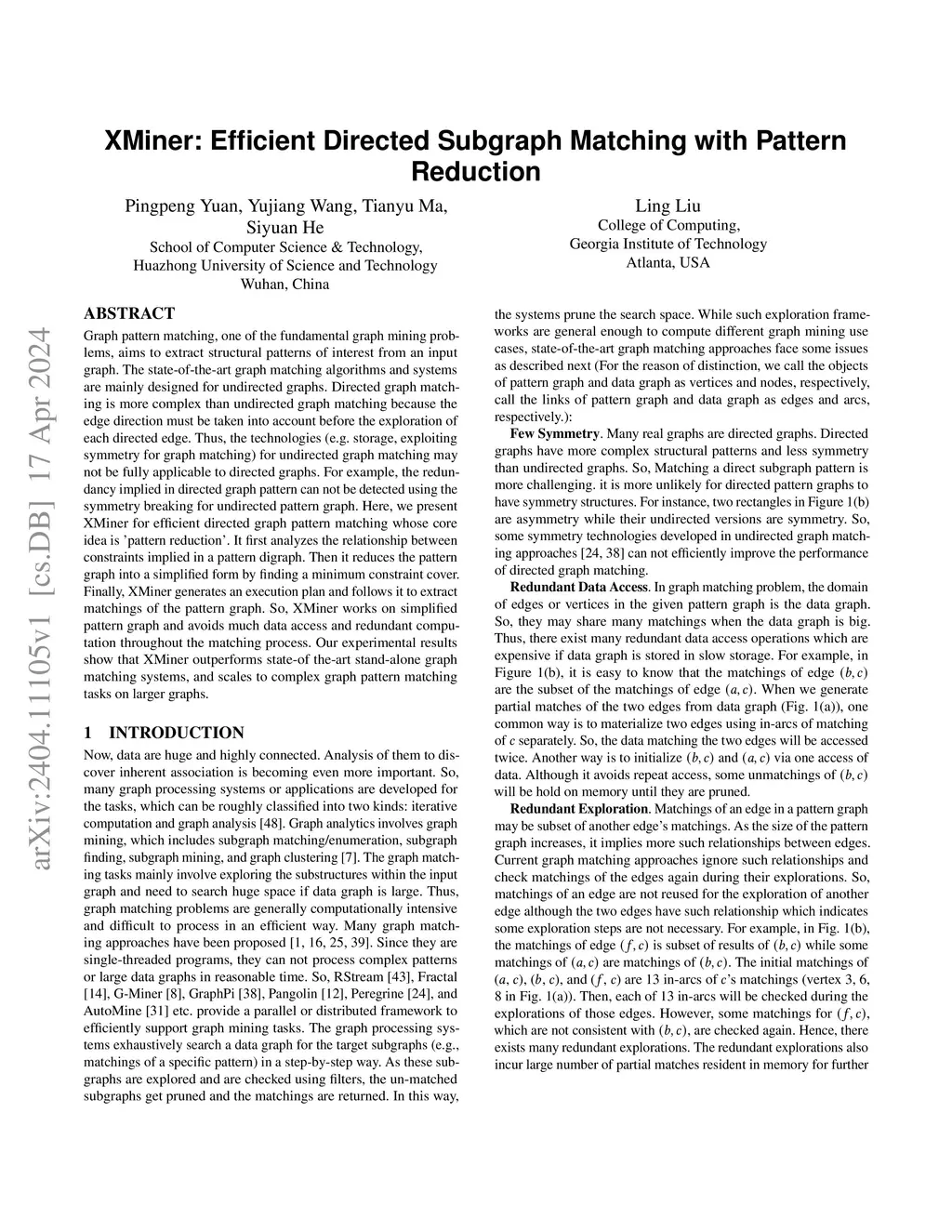 XMiner: Efficient Directed Subgraph Matching with Pattern Reduction