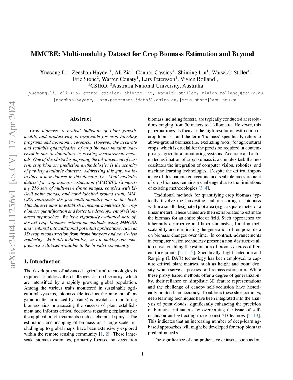 MMCBE: Multi-modality Dataset for Crop Biomass Estimation and Beyond