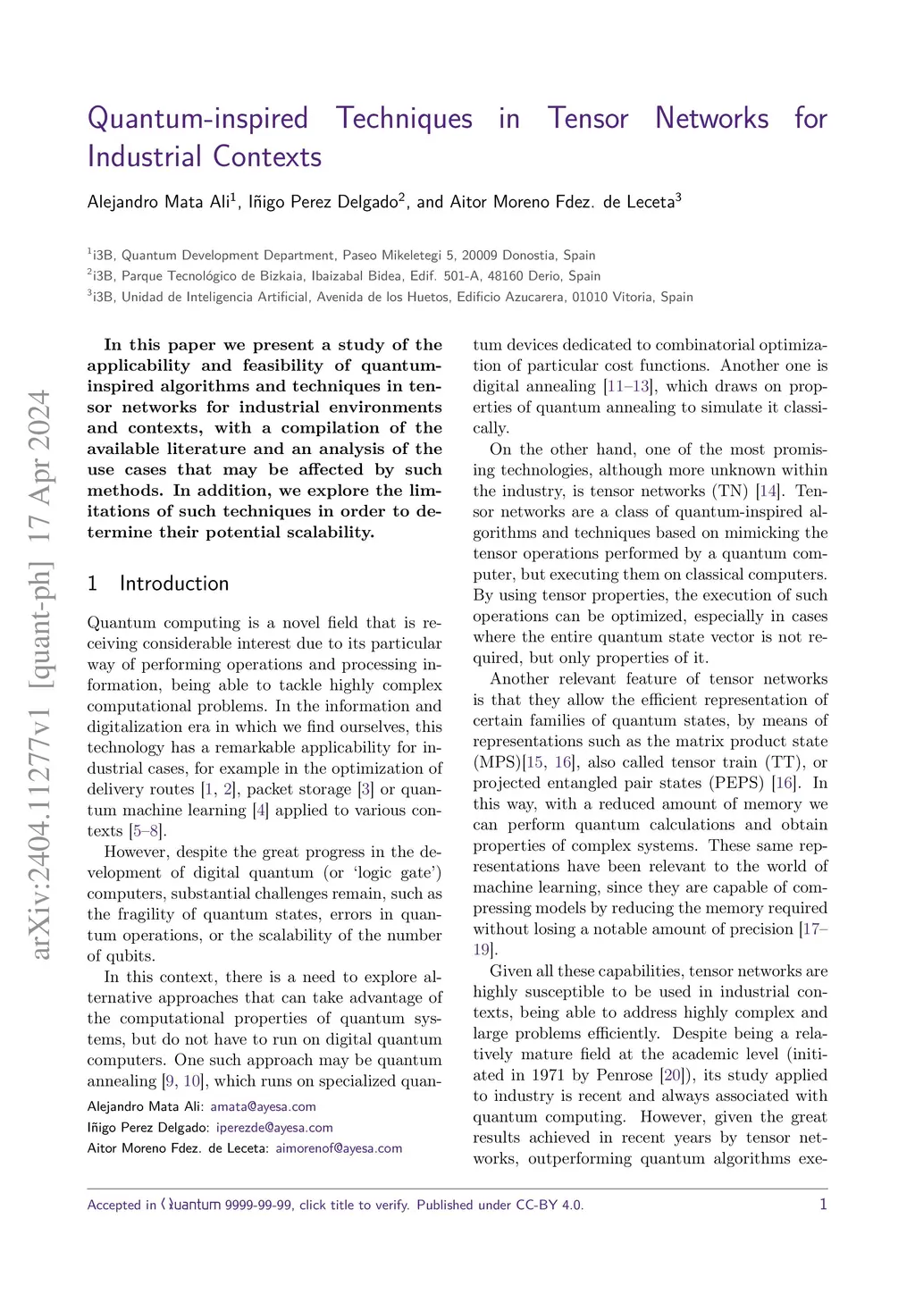 Quantum-inspired Techniques in Tensor Networks for Industrial Contexts