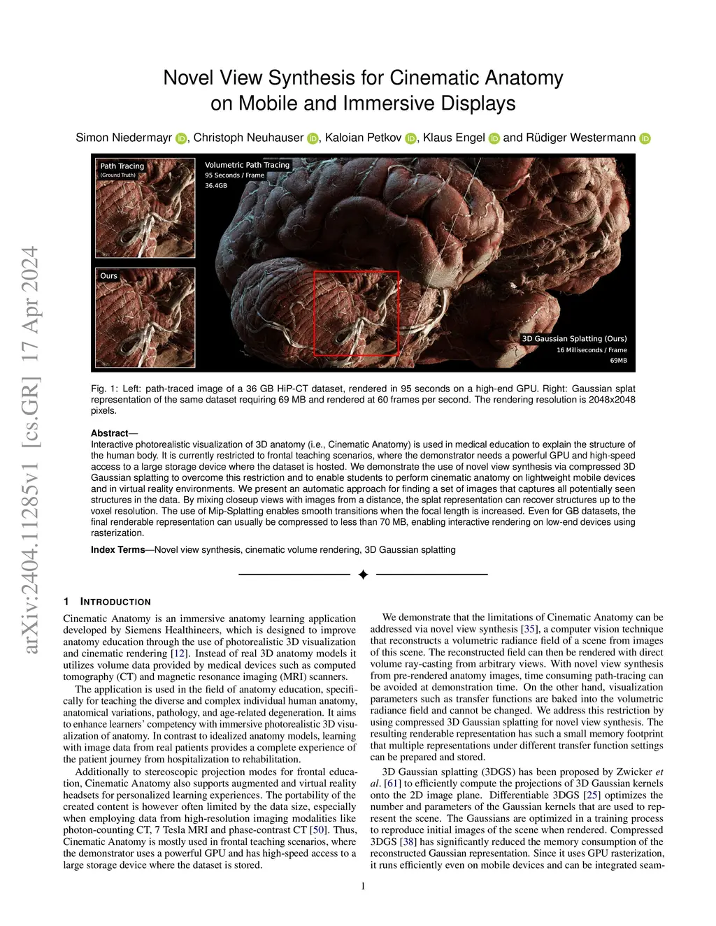 Application of 3D Gaussian Splatting for Cinematic Anatomy on Consumer