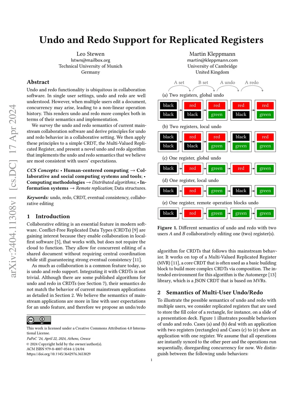 Undo and Redo Support for Replicated Registers