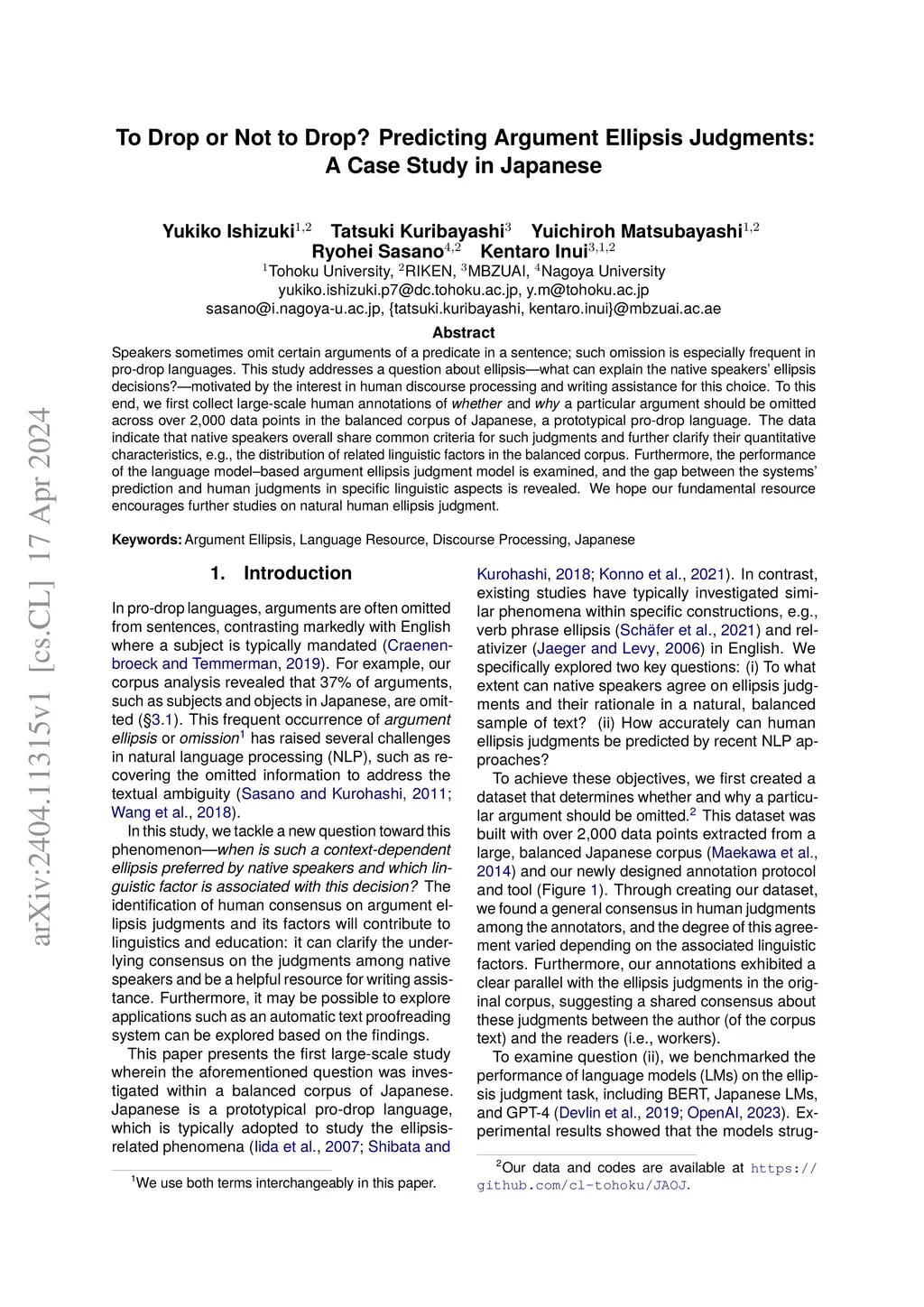 To Drop or Not to Drop? Predicting Argument Ellipsis Judgments: A Case