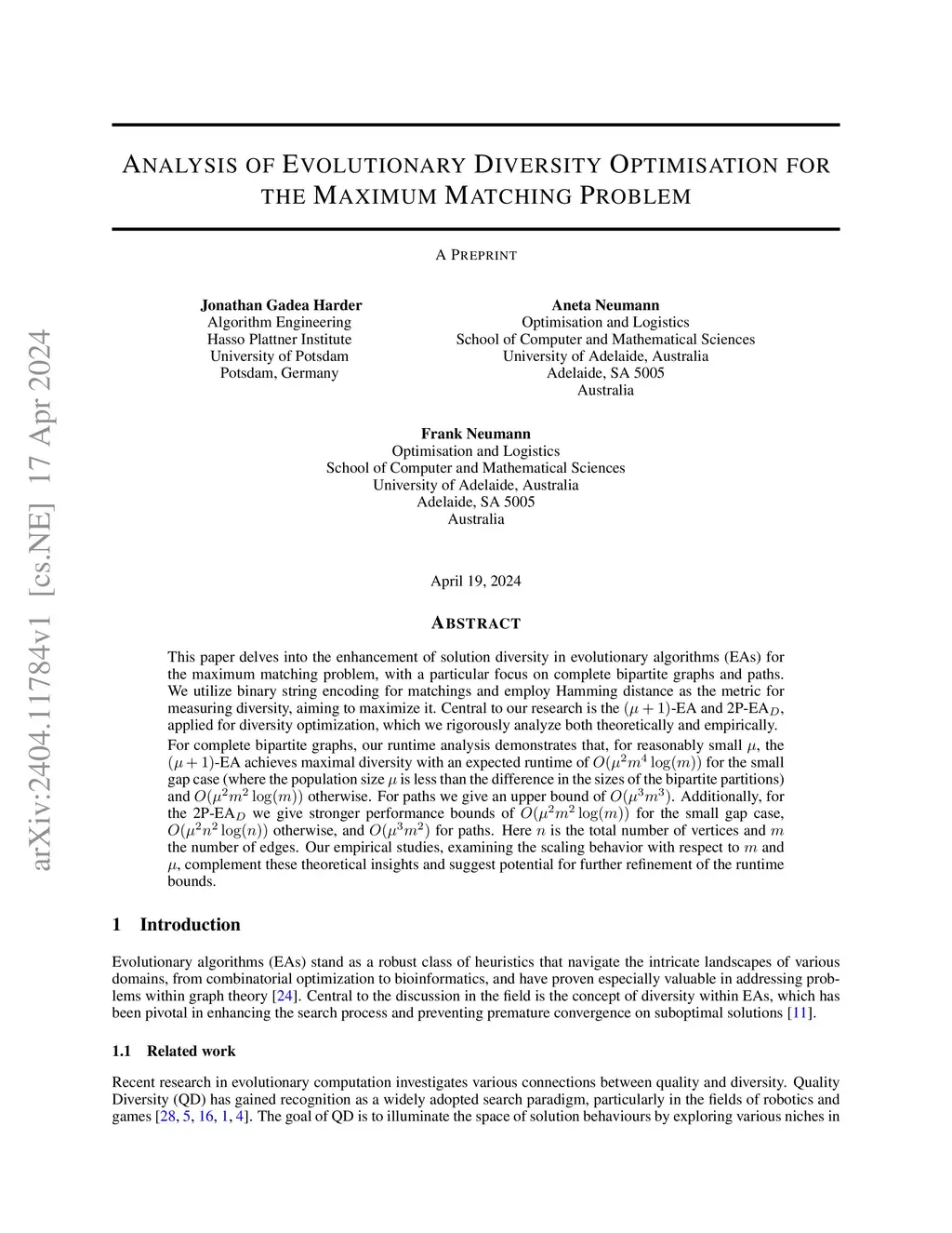 This paper explores the enhancement of solution diversity in evolutionary algorithms (EAs) for the maximum matching problem, concentrating on complete bipartite graphs and paths. We adopt binary string encoding for matchings and use Hamming distance to measure diversity, aiming for its maximization. Our study centers on the -EA and , which are applied to optimize diversity. We provide a rigorous theoretical and empirical analysis of these algorithms. For complete bipartite graphs, our runtime analysis shows that, with a reasonably small , the -EA achieves maximal diversity with an expected runtime of for the small gap case (where the population size is less than the difference in the sizes of the bipartite partitions) and otherwise. For paths, we establish an upper runtime bound of . The displays stronger performance, with bounds of for the small gap case, otherwise, and for paths. Here, represents the total number of vertices and the number of edges. Our empirical studies, which examine the scaling behavior with respect to and , complement these theoretical insights and suggest potential for further refinement of the runtime bounds.