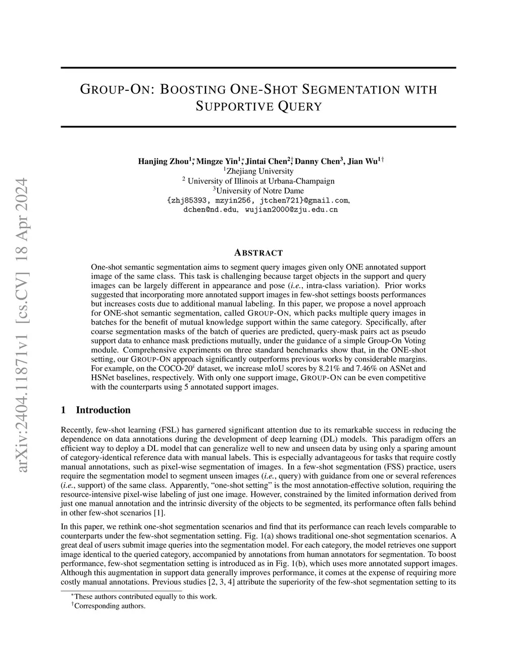 Group-On: Boosting One-Shot Segmentation with Supportive Query