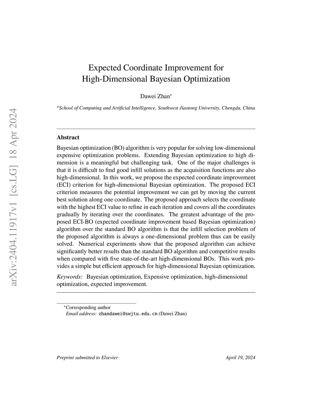 Expected Coordinate Improvement for High-Dimensional Bayesian Optimization