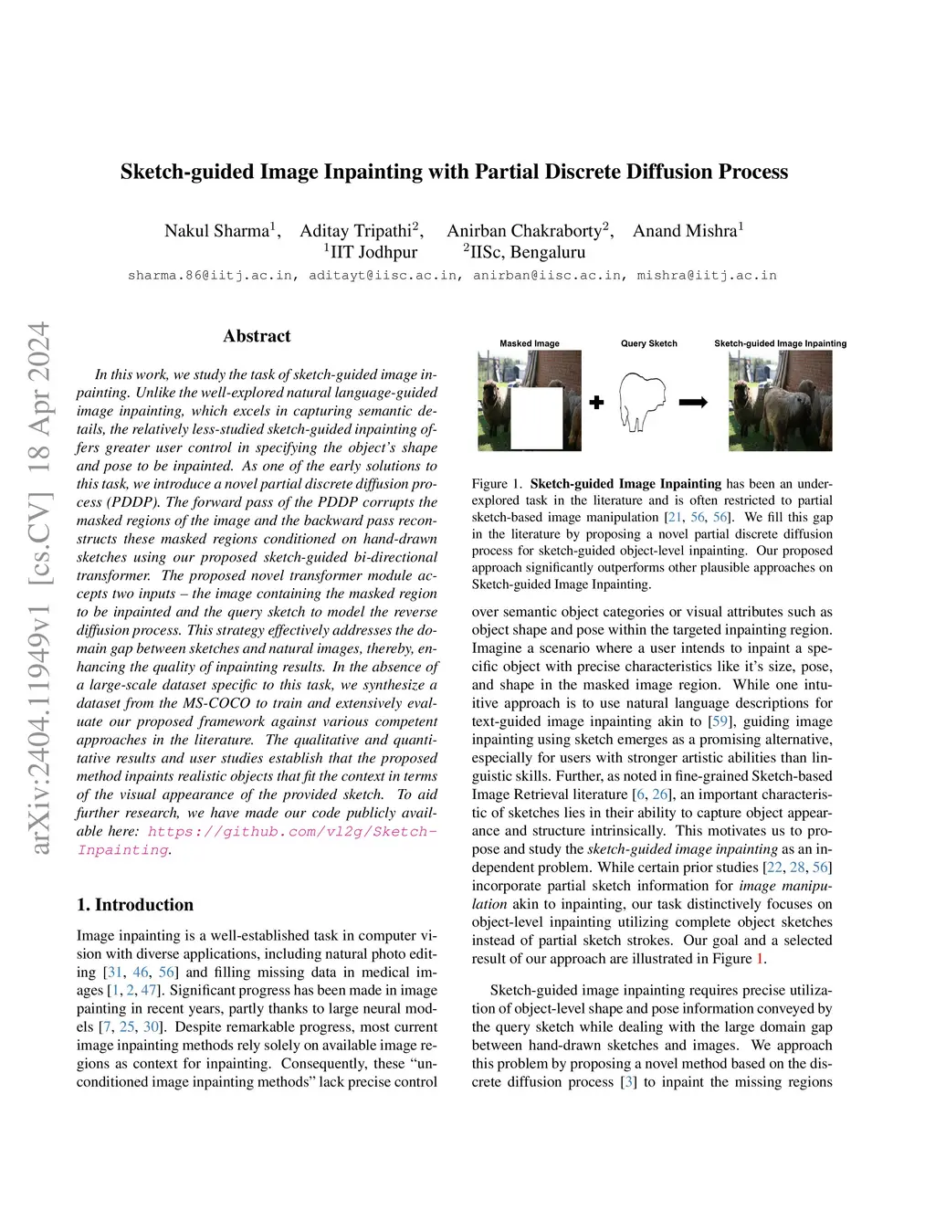 Sketch-guided Image Inpainting with Partial Discrete Diffusion Process