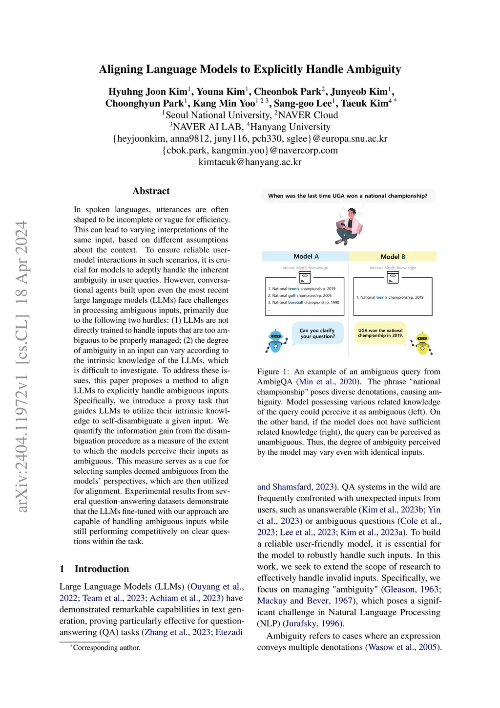 In interactions between users and language model agents, user utterances frequently exhibit ellipsis (omission of words or phrases) or imprecision (lack of exactness) to prioritize efficiency. This can lead to varying interpretations of the same input based on different assumptions or background knowledge. It is thus crucial for agents to adeptly handle the inherent ambiguity in queries to ensure reliability. However, even state-of-the-art large language models (LLMs) still face challenges in such scenarios, primarily due to the following hurdles: (1) LLMs are not explicitly trained to deal with ambiguous utterances; (2) the degree of ambiguity perceived by the LLMs may vary depending on the possessed knowledge. To address these issues, we propose Alignment with Perceived Ambiguity (APA), a novel pipeline that aligns LLMs to manage ambiguous queries by leveraging their own assessment of ambiguity (i.e., perceived ambiguity). Experimental results on question-answering datasets demonstrate that APA empowers LLMs to explicitly detect and manage ambiguous queries while retaining the ability to answer clear questions. Furthermore, our finding proves that APA excels beyond training with gold-standard labels, especially in out-of-distribution scenarios.