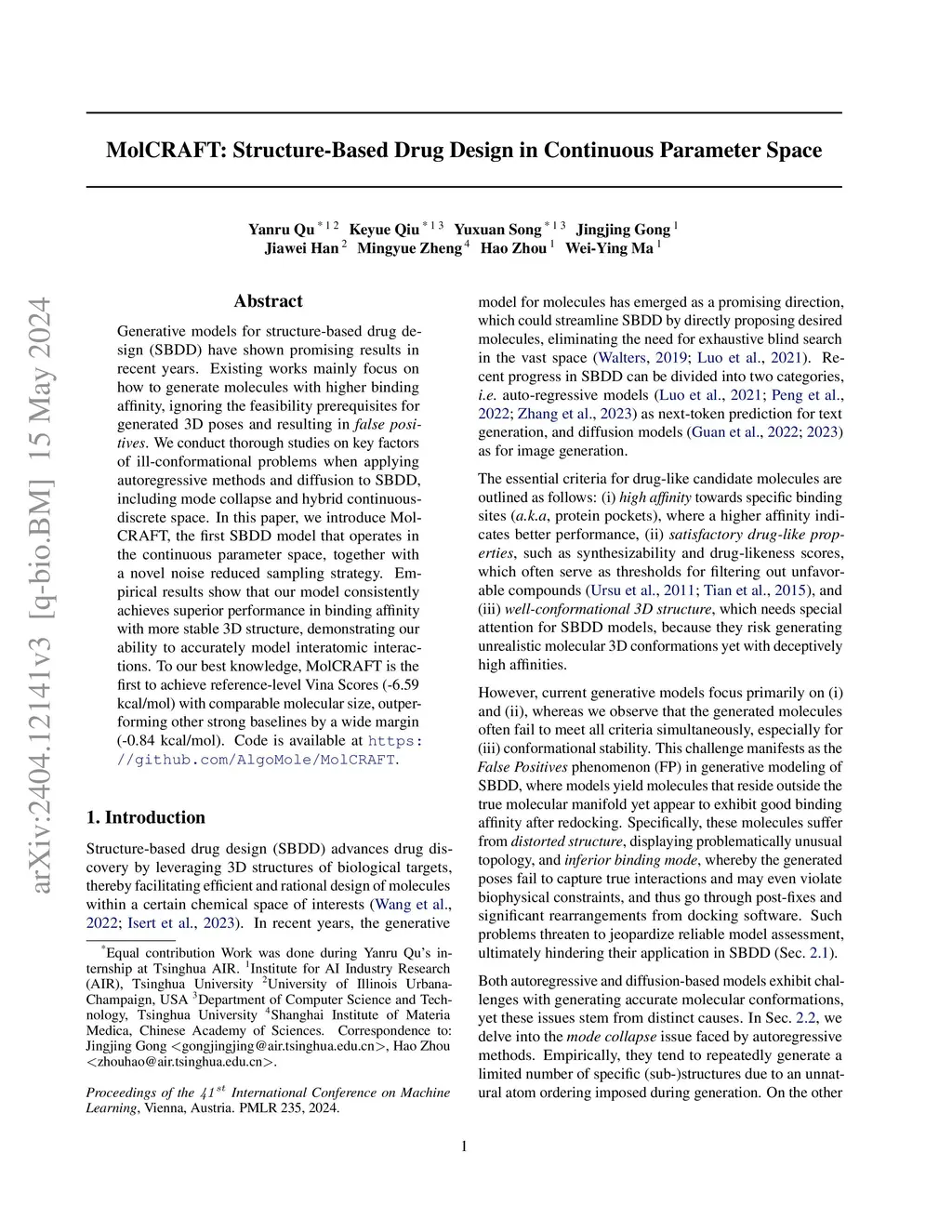 MolCRAFT: Structure-Based Drug Design in Continuous Parameter Space